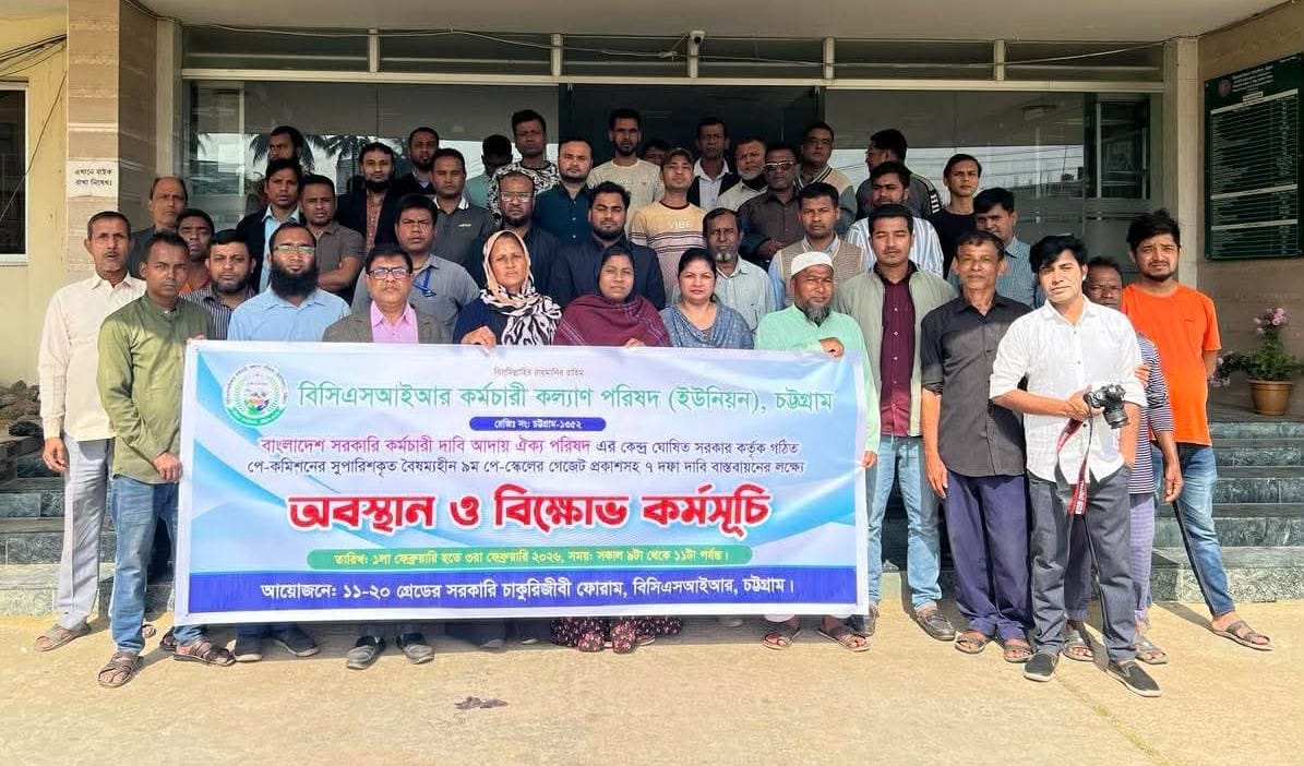 জাতীয় ভিত্তিক সংগঠন বাংলাদেশ সরকারি কর্মচারী দাবি আদায় ঐক্য পরিষদ এর কেন্দ্র ঘোষিত পে-কমিশনের সুপারিশকৃত বৈষম্যহীন নবম পে-স্কেলের গেজেট প্রকাশ ও ৭ দফা দাবি বাস্তবায়নের লক্ষ্যে বিসিএসআইআর কর্মচারী কল্যাণ পরিষদ (ইউনিয়ন), চট্টগ্রাম এর উদ্যোগে চট্টগ্রাম গবেষণাগারের সকল কর্মচারীদের নিয়ে গত ০১ লা ফেব্রুয়ারী হতে০৩রা ফেব্রুয়ারী -২০২৬ প্রতিদিন সকাল ০৯.০০ টা হতে ১১.০০ ঘটিকা পর্যন্ত ২ ঘন্টা ব্যাপি অবস্থান ও বিক্ষোভ কর্মসূচী পালিত হয়। অদ্য ৫ই ফেব্রুয়ারী-২০২৬ ইং বৃহস্পতিবার সকাল ৯.০০-দুপুর ০১.০০ ঘটিকা পর্যন্ত একই দাবিতে গবেষেণাগারে ৫ম দিনের অবস্থান ও বিক্ষোভ কর্মসুচি পালিত হয়।