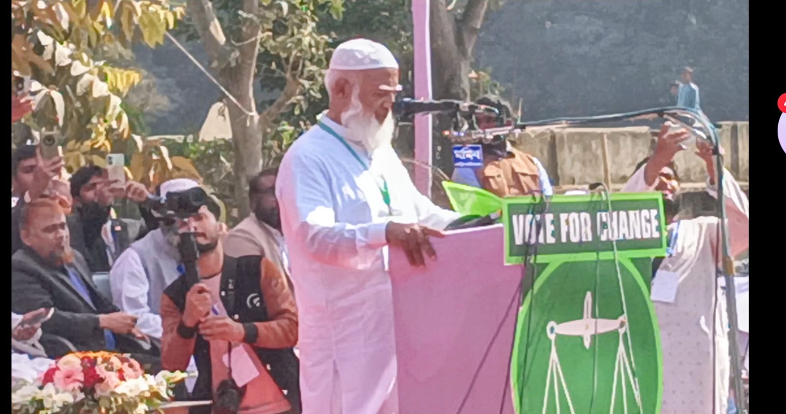 । আজ (২ফেব্রুয়ার) রোজ বৃহস্পতিবার সকাল ৯.০০ ঘটিকার সময় চাপাই নবাবগঞ্জ সরকারি কলেজ মাঠে বিশাল নির্বাচনী জনসভা অনুষ্ঠিত হয়েছে। উক্ত জনসভায় সভাপতিত্ব করেন। জনাব মাওলানা আবুজার গিফারি আমির বাংলাদেশ জামায়াতে ইসলামী চাঁপাইনবাবগঞ্জ জেলা শাখা, বিশেষ অতিথি হিসেবে উপস্থিত ছিলেন রাশেদ প্রধান ঢাকা, নুরুল ইসলাম সাদ্দাম বাংলাদেশ ইসলামী ছাত্রশিবির কেন্দ্রীয় সভাপতি ঢাকা। খলিলুর রহমান ভিপি চাকসু, লতিফুর রহমান সাবেক এমপি চাঁপাইনবাবগঞ্জ জেলা, নজরুল ইসলাম সাবেক মেয়র রহমান চাপাই নবাবগঞ্জ পৌরসভা, মুখলেসুর রহমান সাবেক চেয়ারম্যান চাপাই নবাবগঞ্জ উপজেলা, আরো উপস্থিত ছিলেন চাঁপাইনবাবগঞ্জের তিনটি আসনের ১১ মনোনীত সংসদ সদস্য পদপ্রার্থী ডক্টর মিজানুর রহমান, ডক্টর কেরামত আলী, নুরুল ইসলাম বুলবুল সহ কেন্দ্রীয় জেলা নেতৃবৃন্দ। এ সময় প্রধান অতিথির বক্তব্যে ডাক্তার শফিকুর রহমান বলেন দেশ ও জাতি কাদের হাতে নিরাপদ মানুষ তা বুঝে গিয়েছে । বাংলাদেশ জামায়াত ইসলাম যদি ক্ষমতায় যায় তাহলে সর্বপ্রথম পুলিশ সহ যারা নিরাপত্তা প্রহরী ৮ ঘণ্টার বেশি নিরাপত্তা দেয় তাদের ব্যাপারেও দেখা হবে তাদের নায্য অধিকার দেওয়া হবে বৈষম্য দূর করা হবে। নারীদের অধিকার ফিরিয়ে দেওয়া হবে একে অপরের অধিকার ফিরিয়ে দেওয়া হবে চাপাইনবাবগঞ্জের আমকে শুধু দেশ নয় বিদেশেও রপ্তানি করা হবে চাঁপাইনবাবগঞ্জের কৃষি ব্যবস্থা উন্নয়ন করা হবে রেল ব্যবস্থা উন্নয়ন করা হবে। এ বলে তিনি চাঁপাইনবাবগঞ্জের বাংলাদেশ জামায়াত ইসলামী ও ১১ দল মনোনীত সংসদ সদস্য পদপ্রার্থী তিনজন প্রার্থীর হাতে দাঁড়িপাল্লা মার্কা তুলে দেন। এ সময় তিনি বলেন । এই যে ন্যায় ইনসাফের মার্কা আজ তোমাদের হাতে তুলে দেওয়া হলো আজ থেকে তোমাদের হাতে জনগণের দায়িত্ব রইল মজবুত করে ধরে রাখবে এবং জনগণের দায়িত্ব কাঁধে তুলে জনগণের অধিকার বুঝিয়ে দিবে । জনগণের উদ্দেশ্য বলেন আজ থেকে তিনজনের দায়িত্ব আপনাদের হাতে তুলে দিলাম আজ থেকে ১২ তারিখ পর্যন্ত আপনাদের চোখের ঘুম হারাম করে দরকার হলে ভোট কেন্দ্র পাহারা দিয়ে দাঁড়িপাল্লাকে জয়যুক্ত করে ঘরে ফিরবেন কোন রক্ত চক্ষুর কাছে হার মানবেন না। পরিশেষে সকলের কাছে দোয়া চেয়ে বক্তব্য শেষ করেন