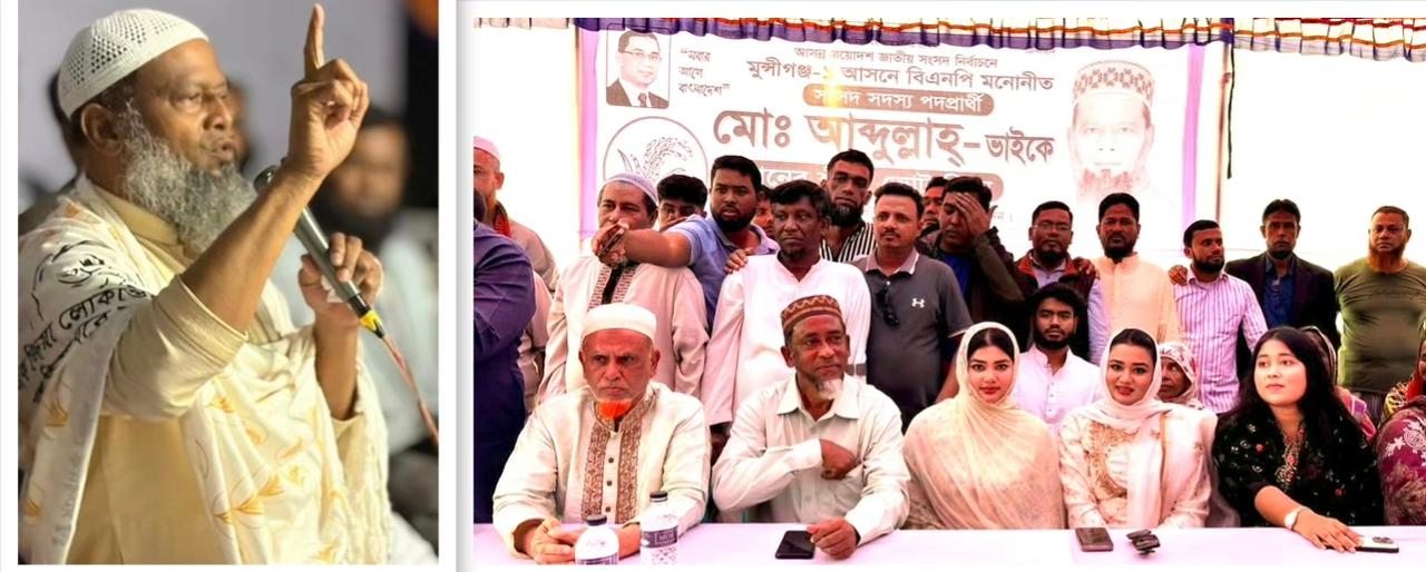 আসন্ন ত্রয়োদশ জাতীয় সংসদ নির্বাচনকে সামনে রেখে মুন্সীগঞ্জ-০১ আসনে বিএনপির মনোনীত সংসদ সদস্য পদপ্রার্থী শেখ মোঃ আব্দুল্লাহর সমর্থনে রশুনিয়া ইউনিয়নে এক বিশাল মহিলা সমাবেশ অনুষ্ঠিত হয়েছে। বুধবার (৪ ফেব্রুয়ারি) স্থানীয় একটি মাঠে আয়োজিত এই সমাবেশে নারী ভোটারদের ব্যাপক উপস্থিতি লক্ষ্য করা গেছে।পারিবারিক ও রাজনৈতিক নেতৃবৃন্দের অংশগ্রহণনির্বাচনী এই প্রচারণামূলক সভায় প্রধান অতিথি হিসেবে উপস্থিত ছিলেন প্রার্থী শেখ মোঃ আব্দুল্লাহর ছোট বোন স্মৃতি আক্তার। সমাবেশে তিনি তার ভাইয়ের পক্ষে ভোট চেয়ে এলাকার উন্নয়নে বিএনপির হাতকে শক্তিশালী করার আহ্বান জানান।