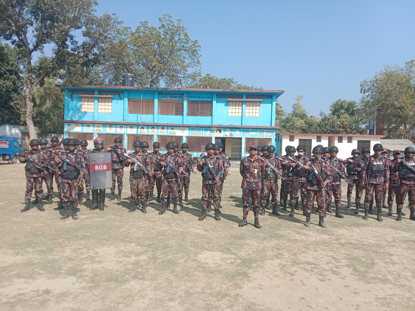 মোঃ আরিফুজ্জামান আরিফ, স্টাফ রিপোর্টার (সাতক্ষীরা) : আসন্ন ত্রয়োদশ জাতীয় সংসদ নির্বাচন ২০২৬ নিরাপদ, অবাধ, সুষ্ঠু ও নিরপেক্ষ করতে দেবহাটা উপজেলায় বিশেষ নিরাপত্তা ব্যবস্থা গ্রহণ করেছে নীলডুমুর ব্যাটালিয়ন (১৭ বিজিবি)।দেবহাটা উপজেলায় স্থাপিত দুটি বেইজ ক্যাম্পে মোট চার প্লাটুন বিজিবি সদস্য নিয়মিত মোতায়েন রয়েছে।দেবহাটা উপজেলার দায়িত্বে রয়েছেন ১৭ বিজিবির অপস অফিসার মেজর সুস্মিত শোভন দাস,এএমসি। মোতায়েনকৃত সদস্যরা দিনরাত ভোটকেন্দ্র ও সাধারণ জনগণের নিরাপত্তা নিশ্চিত করতে সক্রিয়ভাবে টহল পরিচালনা করছে। এরই ধারাবাহিকতায় তার নেতৃত্বে আজ ৬ ফেব্রুয়ারি দিনব্যাপি ডোমিনেশন পেট্রোল ও ভোটকেন্দ্র রেকি কার্যক্রম পরিচালনা করা হয়।টহল কার্যক্রমে জীপ, পিকআপ, মাইক্রোবাস, মোটরসাইকেল এবং আধুনিক সার্ভেলেন্স ইকুইপমেন্টস্ (বডি অর্ন ক্যামেরা ও ড্রোন) ব্যবহার করা হচ্ছে।এছাড়াও নির্বাচন সুরক্ষা অ্যাপস ব্যবহার করা হচ্ছে, যার মাধ্যমে যেকোনো নাশকতা প্রতিরোধে দ্রুত কার্যকরী ব্যবস্থা গ্রহণ সম্ভব হবে।