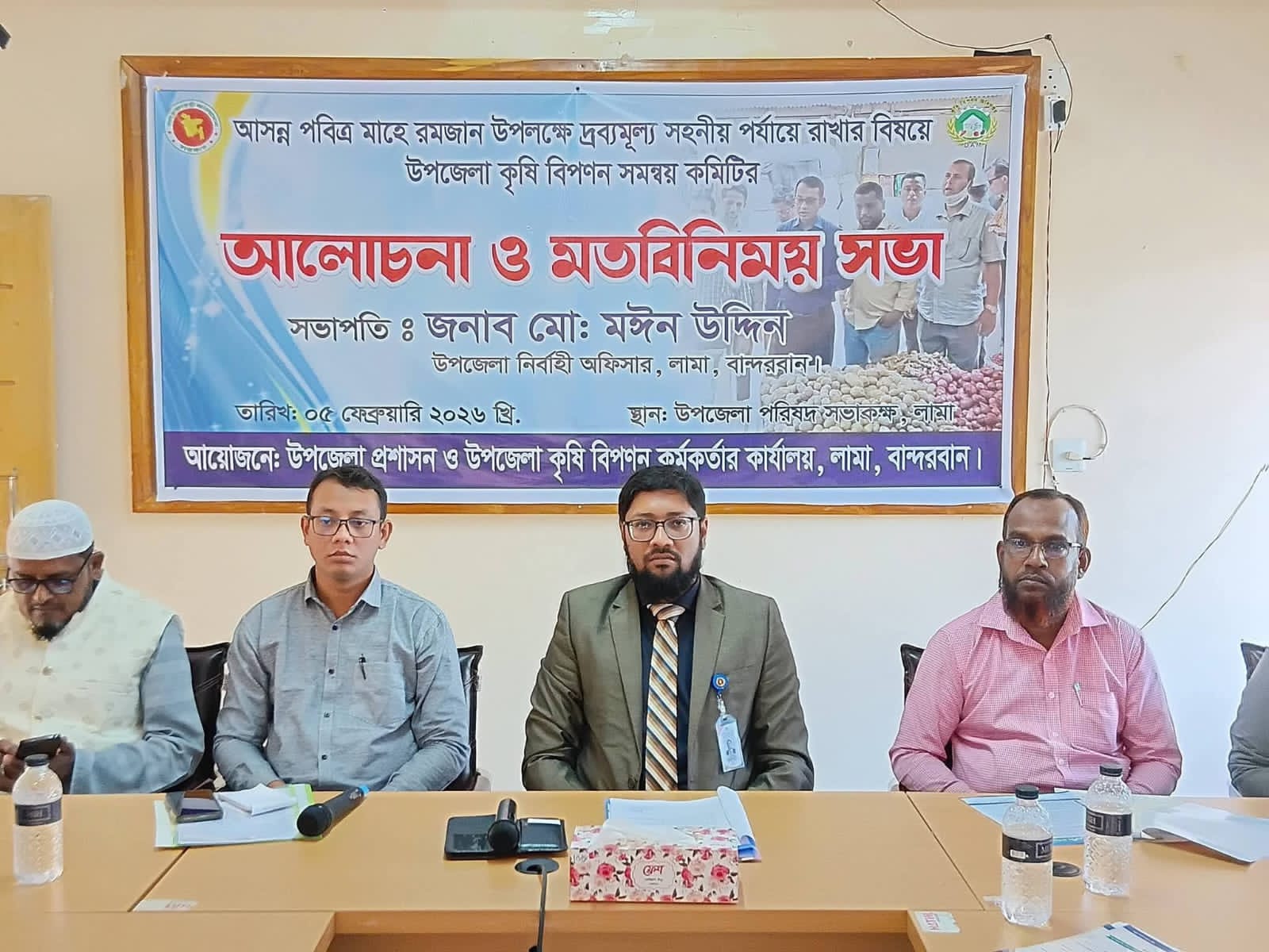 আসন্ন পবিত্র মাহে রমজানকে সামনে রেখে লামা উপজেলায় নিত্যপ্রয়োজনীয় দ্রব্যমূল্য সাধারণ মানুষের ক্রয়ক্ষমতার মধ্যে রাখার লক্ষ্যে উপজেলা কৃষি বিপণন কমিটির উদ্যোগে এক আলোচনা ও মতবিনিময় সভা অনুষ্ঠিত হয়েছে। উপজেলা পরিষদ কনফারেন্স রুমে আয়োজিত এ সভায় প্রধান অতিথি হিসেবে উপস্থিত ছিলেন লামা উপজেলা নির্বাহী অফিসার জনাব মোঃ মঈন উদ্দিন। সভায় সভাপতিত্ব করেন উপজেলা কৃষি বিপণন কর্মকর্তা (ভারপ্রাপ্ত) জনাব মোঃ বোরহান।