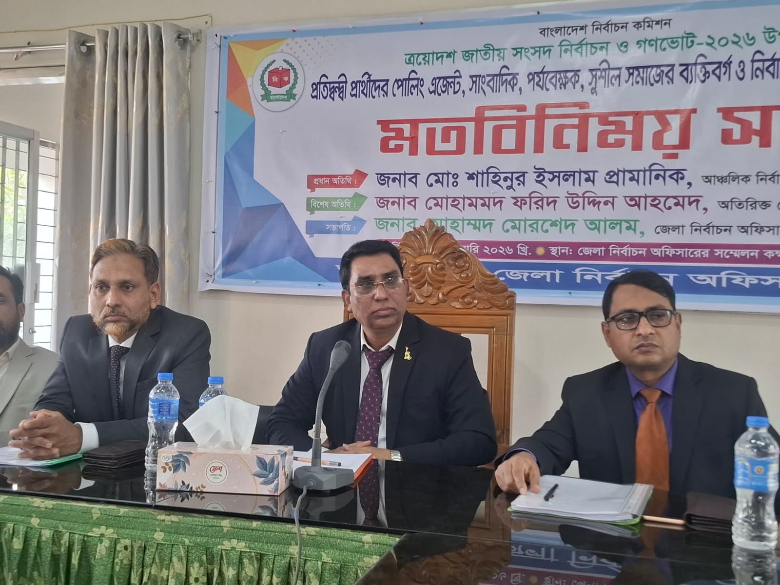 ময়মনসিংহ অঞ্চলের আঞ্চলিক নির্বাচন কর্মকর্তা মোঃ শাহিনুর ইসলাম প্রামাণিক বলেছেন, যারা প্রকৃত পর্যবেক্ষক তারাই পর্যবেক্ষক কার্ড পাবে। তালিকা যাচাই-বাছাই হচ্ছে। সবাই পাবে না। নিশ্চিত থাকেন। প্রিজাইডিং অফিসার ফলাফল ঘোষণা করে কেন্দ্র থেকে যাবে৷ রেজাল্ট উল্টাবে এমন চিন্তাভাবনা মাথায় আনবেন না। বলেছি ভালো ভোট হবে। নির্বাচন কমিশনের ৬টা জেলার প্রধান হিসেবে কথা দিয়ে যাচ্ছি ভালো ভোট হবে। ভালো নির্বাচন হবে। আপনাদের মধ্যে যেনো মেলবন্ধন থাকে। সবার উদ্দেশ্য একটাই ভালো ভোট। এজন্য আমাদের সহযোগিতা করেন। আমরা সচেতন। যারা নির্বাচনকে প্রশ্নবিদ্ধ করতে চাইবে আমরা সচেতন থাকলে তারাও সচেতন হয়ে যাবে।শনিবার (০৭ ফেব্রুয়ারি) বিকালে জেলা নির্বাচন অফিসারের সম্মেলন কক্ষে আয়োজিত প্রতিদ্বন্দ্বী প্রার্থীদের পোলিং এজেন্ট, সাংবাদিক, পর্যবেক্ষক, সুশীল সমাজের প্রতিনিধি ও নির্বাচন সংশ্লিষ্ট ব্যাক্তিবর্গের সাথে মতবিনিময় সভায় প্রধান অতিথির বক্তব্যে তিনি এসব কথা বলেন।তিনি বলেন, বিভিন্ন প্রেসে অভিযান চালানো হচ্ছে। যদি কেউ ব্যালট পেপার করে থাকে আমাদের খবর দিবেন। ইনশাআল্লাহ ব্যবস্থা নেয়া হবে। আর যারা পোলিং এজেন্ট থাকবেন আপনারা দেখবেন কোনো ভোটার দুইটার জায়গার ৩টা ব্যালট ফেলছে কিনা? এবারতো গণভোটের একটা ব্যালট থাকবে এবং নরমাল একটা ব্যালট থাকবে। আপনারা তৎপর থাকবেন। তিনি আরও বলেন, প্রত্যেকটা ভোট কেন্দ্রে সিসি ক্যামেরা থাকবে। যদি কোনো কেন্দ্রে সিসি ক্যামেরা না থাকে ওইখানে পুলিশের বডিঅন ক্যামেরা থাকবে। গুরুত্বপূর্ণ প্রত্যেকটি কেন্দ্রে পুলিশের বডিঅন ক্যামেরা থাকবে। কাজেই কেউ যদি কোনো ধরনের চিন্তাভাবনা করেও থাকে পার পাবে না।আঞ্চলিক নির্বাচন কর্মকর্তা বলেন, যারা জাল ভোট দিতে চাইবে তারা কিন্তু বিভিন্ন ছলাকলার আশ্রয় নিবে৷ তাঁরা দীর্ঘ লাইনে ভিড় করে তাড়াহুড়ো করবে যেনো আমাদের কর্মকর্তারা সময় না পায়। আমরাও তৎপর আছি। আমাদের তরফ থেকে ভোটার দেখে দেখে ভোট নেব। পাশাপাশি আপনারাও দেখবেন কেউ যেনো জাল ভোট না দেয়। আমরা ভোট কেন্দ্রের সামনে তালিকা টাঙিয়ে দেব। যেনো ভোটাররা সহযোগিতা পায়। আনসারদেরও বলে দেয়া আছে তারা যেনো ভোটারদের সহযোগিতা করে।শাহিনুর ইসলাম প্রামাণিক বলেন, আমি দ্ব্যার্থহীন কন্ঠে বলে দিতে পারি আইনশৃঙ্খলা বাহিনী কোনো পক্ষপাত করবে না। সেনাবাহিনী প্রধান আশ্বস্ত করেছেন সেনাবাহিনী সর্বাত্তক সহযোগিতা করবে। সেনাবাহিনী আপনাদের কেন্দ্র পর্যন্ত সহযোগিতা করবে। প্রিজাইডিং অফিসার চাইলে সকল বাহিনীকে তিনি রাখতে পারবেন। সেটা সেনাবাহিনী, বিজিবি, স্ট্রাইকিং ফোর্স হতে পারে। সকল ধরনের বাহিনী প্রিজাইডিং অফিসারকে সহযোগিতার জন্যে রেডি।