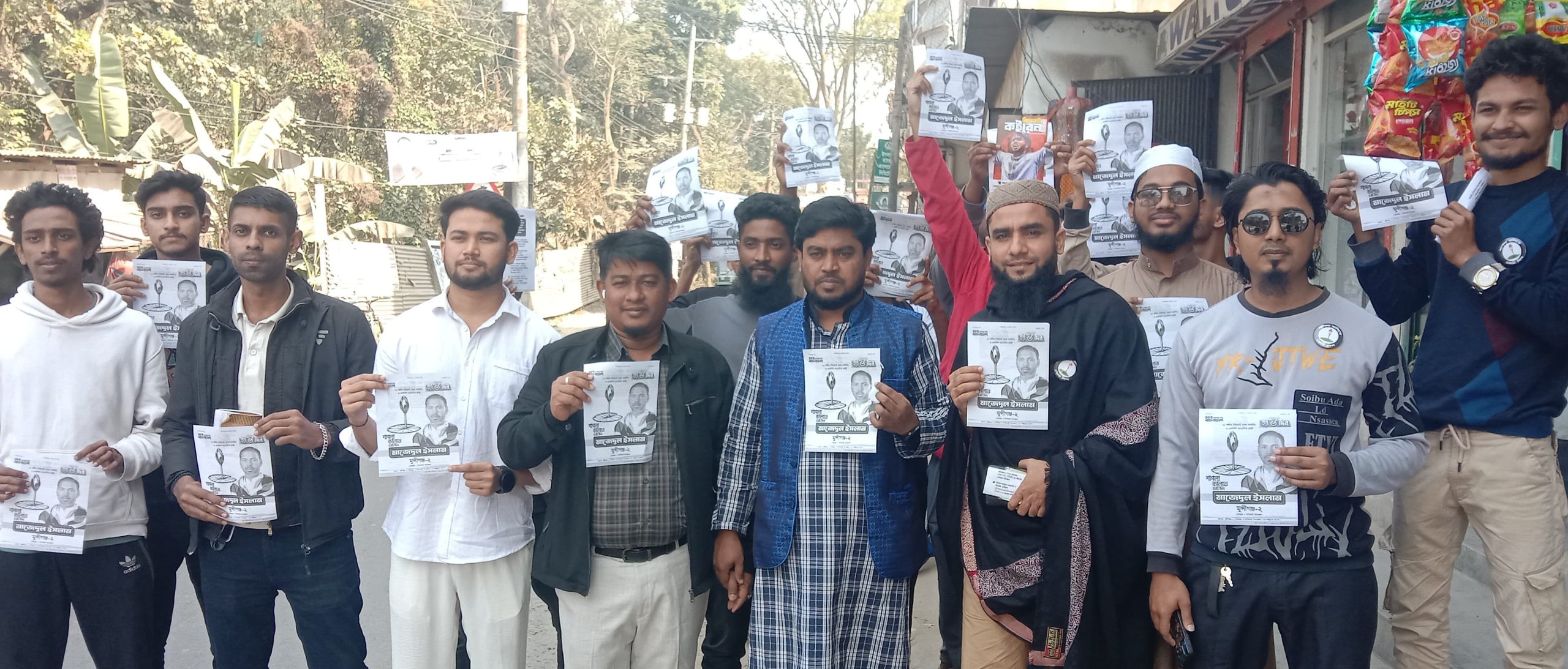 এম এ আব্দুর রাজ্জাক সুমন,মোঃ শওকত ও মোঃ মেহেদী হাসান।এছাড়া ও উপস্থিত ছিলেনমোঃ চঞ্চল, মোঃ মোরসালিন,মোঃ ফারদিন,মোঃ হাফিজ ও মোঃ জসিম উদ্দিন।স্থানীয় নেতৃবৃন্দ ও বিভিন্ন শ্রেণি-পেশার মানুষ কর্মসূচিতে অংশ নেন।নেতারা বলেন,জনগণের অধিকার ও ন্যায্য দাবি আদায়ে১১ দলীয় ঐক্য জোট ঐক্যবদ্ধভাবে কাজ করছে।তারা আরও বলেন,সুষ্ঠু ও গ্রহণযোগ্য নির্বাচনের মাধ্যমে জনগণের সরকার প্রতিষ্ঠাই তাদের লক্ষ্য গণসংযোগে ভোটারদের মাঝে ব্যাপক সাড়া লক্ষ্য করা গেছে।স্থানীয়রা শাপলা কলি প্রতীকের প্রতি সমর্থনের কথা প্রকাশ করেন।শান্তিপূর্ণ পরিবেশে গণসংযোগ কর্মসূচি সম্পন্ন হয়।