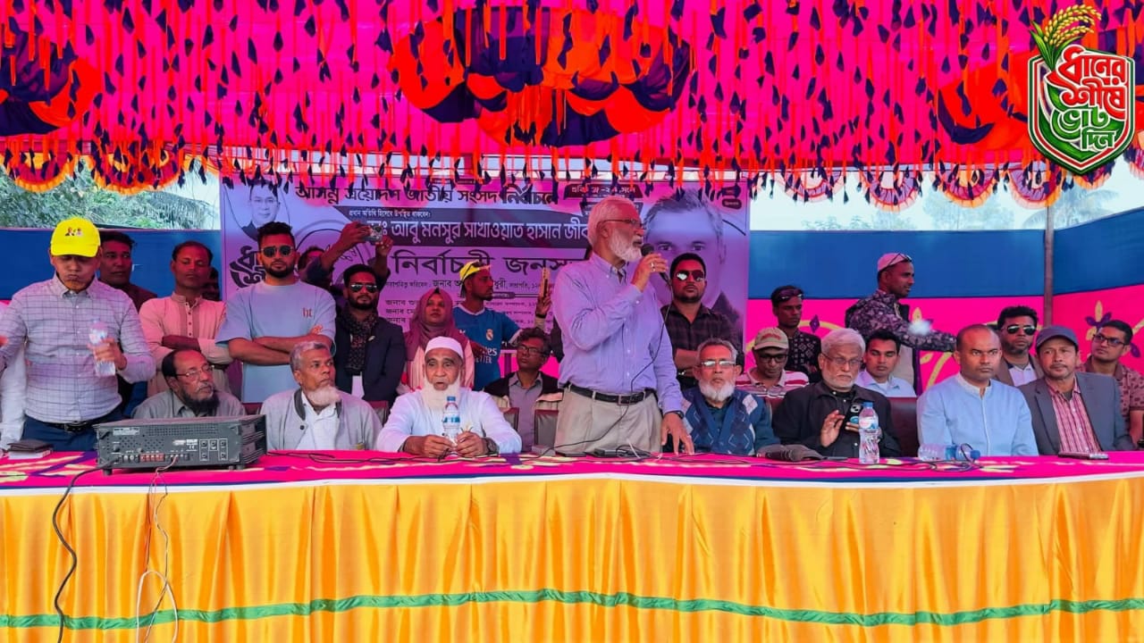 চাঁপাইনবাবগঞ্জের গোমস্তাপুর উপজেলার রহনপুর ইউসুফ আলী সরকারি কলেজ মাঠে ধানের শীষ প্রতীকের বিশাল নির্বাচনী জনসভা অনুষ্ঠিত হয়েছে। শনিবার (৭ই ফেব্রুয়ারি) বিকেল ৪টায় গোমস্তাপুর উপজেলা বিএনপি ও এর অঙ্গ সহযোগী সংগঠনের আয়োজনে অনুষ্ঠিত এই জনসভায় বিপুল সংখ্যক নেতা-কর্মী ও সাধারণ জনগণের উপস্থিতি লক্ষ্য করা যায়।জনসভায় সভাপতিত্ব করেন জনাব আশরাফুল হক, আহ্বায়ক, নির্বাচন কমিটি, পৌরসভা।প্রধান অতিথি হিসেবে উপস্থিত ছিলেন জনাব আলহাজ্ব আমিনুল ইসলাম, ধানের শীষ প্রতীকের চাঁপাইনবাবগঞ্জ-২ (৪৪) আসনের বিএনপি মনোনীত সংসদ সদস্য পদপ্রার্থী।বিশেষ অতিথি হিসেবে উপস্থিত ছিলেন:অ্যাডভোকেট নুরুল ইসলাম সেন্টু, সদস্য সচিব, গোমস্তাপুর উপজেলা বিএনপি;আব্দুস সালাম তুহিন, সাবেক সাধারণ সম্পাদক, জেলা বিএনপি;আবুল কাশেম মোঃ মাসুম, চেয়ারম্যান, ৮ নং আলিনগর ইউনিয়ন পরিষদ;রেজাউল করিম, সাবেক চেয়ারম্যান, ৮ নং আলিনগর ইউনিয়ন পরিষদ;মনিরুজ্জামান সোহরাব, রহনপুর ৫ নং ইউনিয়ন পরিষদ।প্রধান অতিথির বক্তব্যে আলহাজ্ব আমিনুল ইসলাম বলেন,আমি যদি নির্বাচিত হই, তাহলে অধিকাংশ চিকিৎসকের পদোন্নয়নের ব্যবস্থা করব এবং সরকারি ব্যবস্থাপনার মাধ্যমে রোগীদের সেবা নিশ্চিত করব। আপনারা ধানের শীষ প্রতীকের পক্ষে ভোট দিয়ে আমাকে সহযোগিতা করুন, যাতে করে দেশ ও দশের উন্নয়নে কাজ করতে পারি।বক্তব্যের শেষে তিনি সবার কাছে দোয়া প্রার্থনা করেন এবং দেশনেত্রী খালেদা জিয়ার মাগফিরাত কামনা করে তার বক্তব্য শেষ করেন।