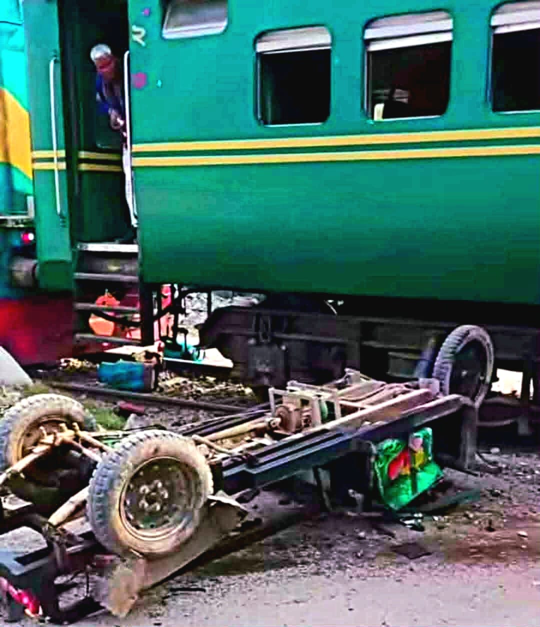 গ্যাস সিলিন্ডারবাহী গাড়ির সঙ্গে ট্রেনের সংঘর্ষ