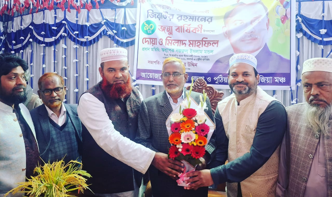 নবনির্বাচিত সংসদ সদস্য ও প্রবীণ রাজনীতিবিদ অধ্যাপক নজরুল ইসলাম মন্ডলকে ফুলেল শুভেচ্ছা ও অভিনন্দন জানানোর সময় মাওলানা মনজুর রহমান ও জেলা জামায়াতে ইসলামীর এ্যাসিস্ট্যান্ট সেক্রেটারি মুহাম্মদ নুরুজ্জামান লিটন ছাড়াও অন্যান্যদের মধ্যে উপস্থিত ছিলেন, জেলা জামায়াতের শুরা ও কর্মপরিষদ সদস্য হাফিজুর রহমান ও মাওলানা আহমদ উল্লাহ, পুঠিয়া উপজেলা জামায়াতে ইসলামীর সহকারী সেক্রেটারি অধ্যক্ষ আব্দুল মান্নান, পুঠিয়া পৌরসভা জামায়াতে ইসলামীর আমির ইঞ্জিনিয়ার এনামুল হক, সেক্রেটারি আব্দুল আহাদ মন্টু, পুঠিয়া ইউনিয়ন জামায়াতে ইসলামীর আমির অধ্যাপক আনোয়ার হোসেন ও সেক্রেটারি অধ্যক্ষ জুবায়ের মাসুম প্রমূখ।