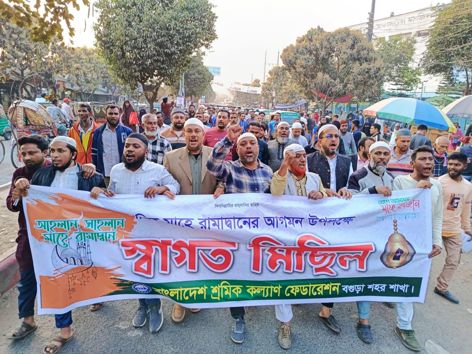 বগুড়ায় মাহে রমজানকে স্বাগত জানিয়ে শ্রমিক কল্যাণ ফেডারেশনের র্যালি