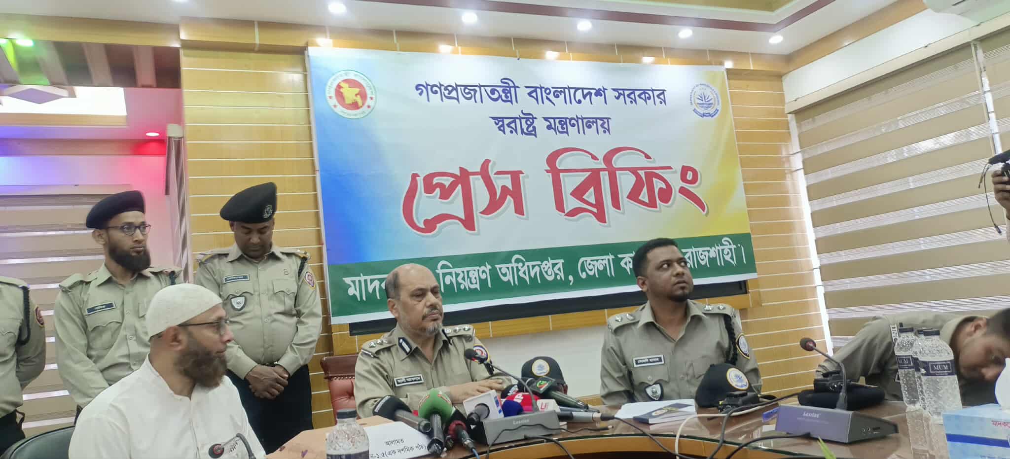 সংবাদ সম্মেলনে রাজশাহী জেলা মাদকদ্রব্য নিয়ন্ত্রণ অধিদপ্তরের উপপরিচালক মো. মেহেদী হাসান বলেন, “তরুণ সমাজকে মাদকের ভয়াবহতা থেকে রক্ষা করতে সরকারের ‘জিরো টলারেন্স’ নীতির অংশ হিসেবে আমাদের অভিযান অব্যাহত থাকবে।
