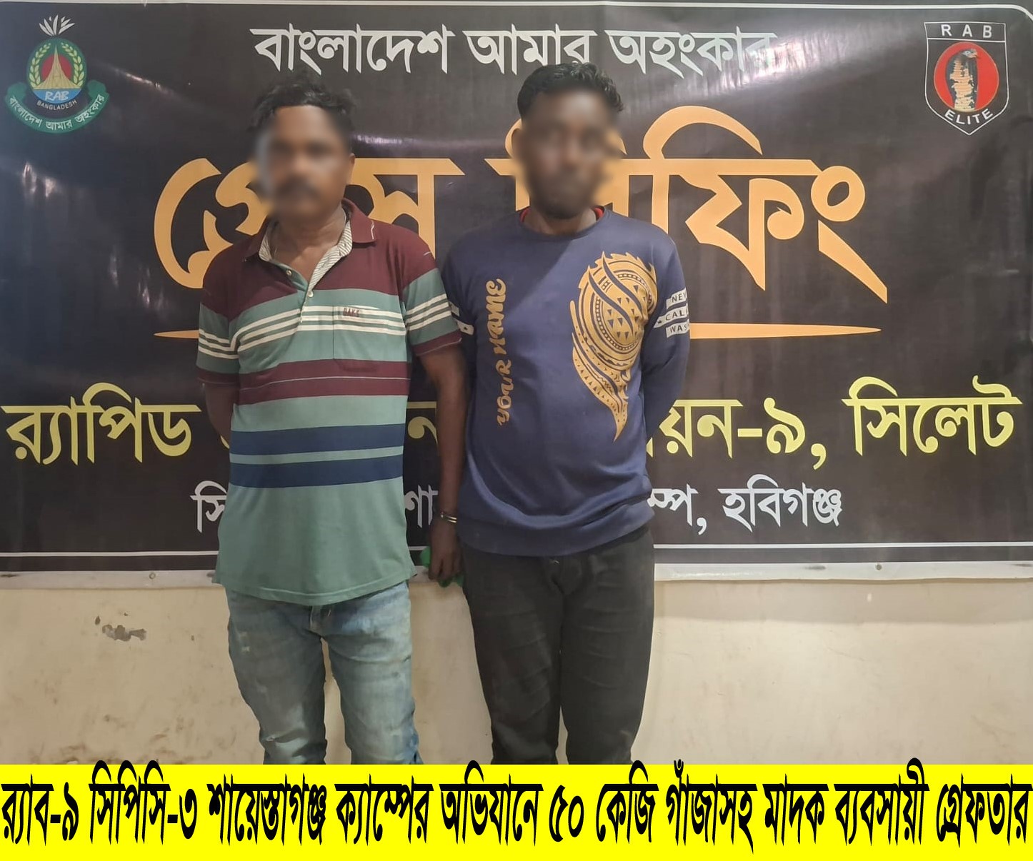 হবিগঞ্জে র্যাবের অভিযানে ৫০ কেজি গাজা ও ১টি সিএনজি সহ আটক ২