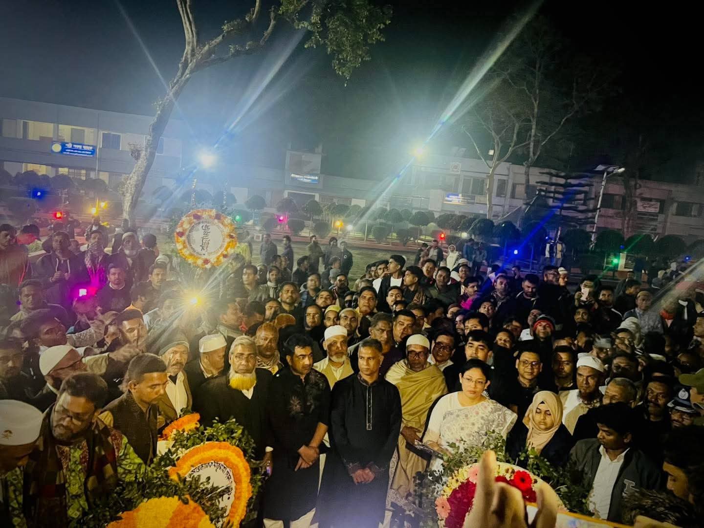 সিরাজগঞ্জ-৫ আসনের এই সংসদ সদস্য রাত ১১টা ৪৫ মিনিটে শহীদ মিনার প্রাঙ্গণে পৌঁছান। পরে ‘আমার ভাইয়ের রক্তে রাঙানো একুশে ফেব্রুয়ারি… আমি কি ভুলিতে পারি’ গানের সুরের মধ্যে তিনি ফুল দিয়ে শ্রদ্ধা নিবেদন করেন।