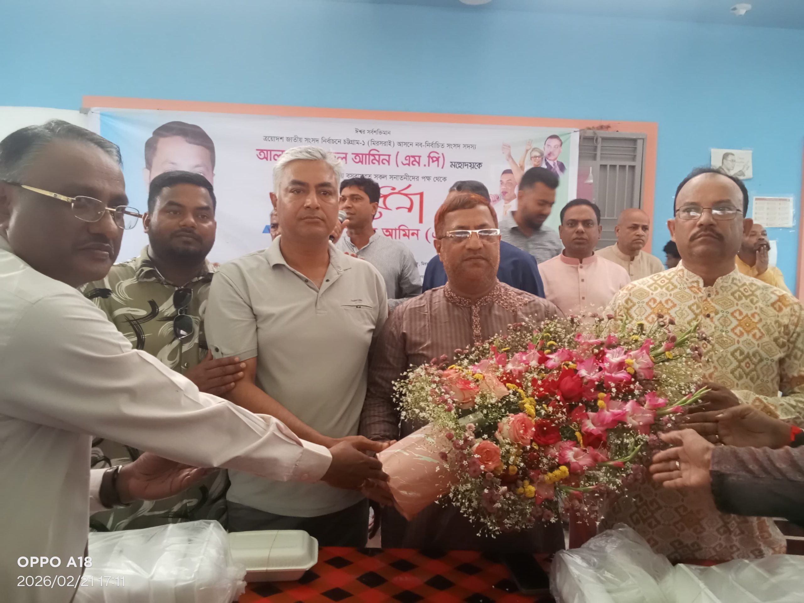 বাংলাদেশ পূজা উদযাপন পরিষদ–এর মীরসরাই উপজেলা শাখার উদ্যোগে চট্টগ্রাম–১ (মীরসরাই) আসনের নবনির্বাচিত সংসদ সদস্য জনাব নুরুল আমিন মহোদয় কে সনাতনী সম্প্রদায়ের পক্ষ থেকে সংবর্ধনা প্রদান করা হয়েছে।