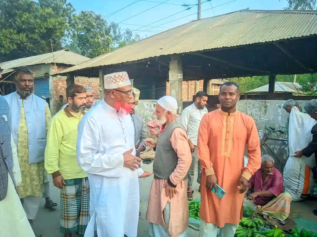 টুনিররহাট বাজারে সকল ব্যবসায়ী ভাইদের সাথে কুশল বিনিময় করেন এবং ব্যবসায়ী ও সাধারণ মানুষদের দ্বারে দ্বারে গিয়ে দোয়া এবং - খোজ খবর নিচ্ছেন