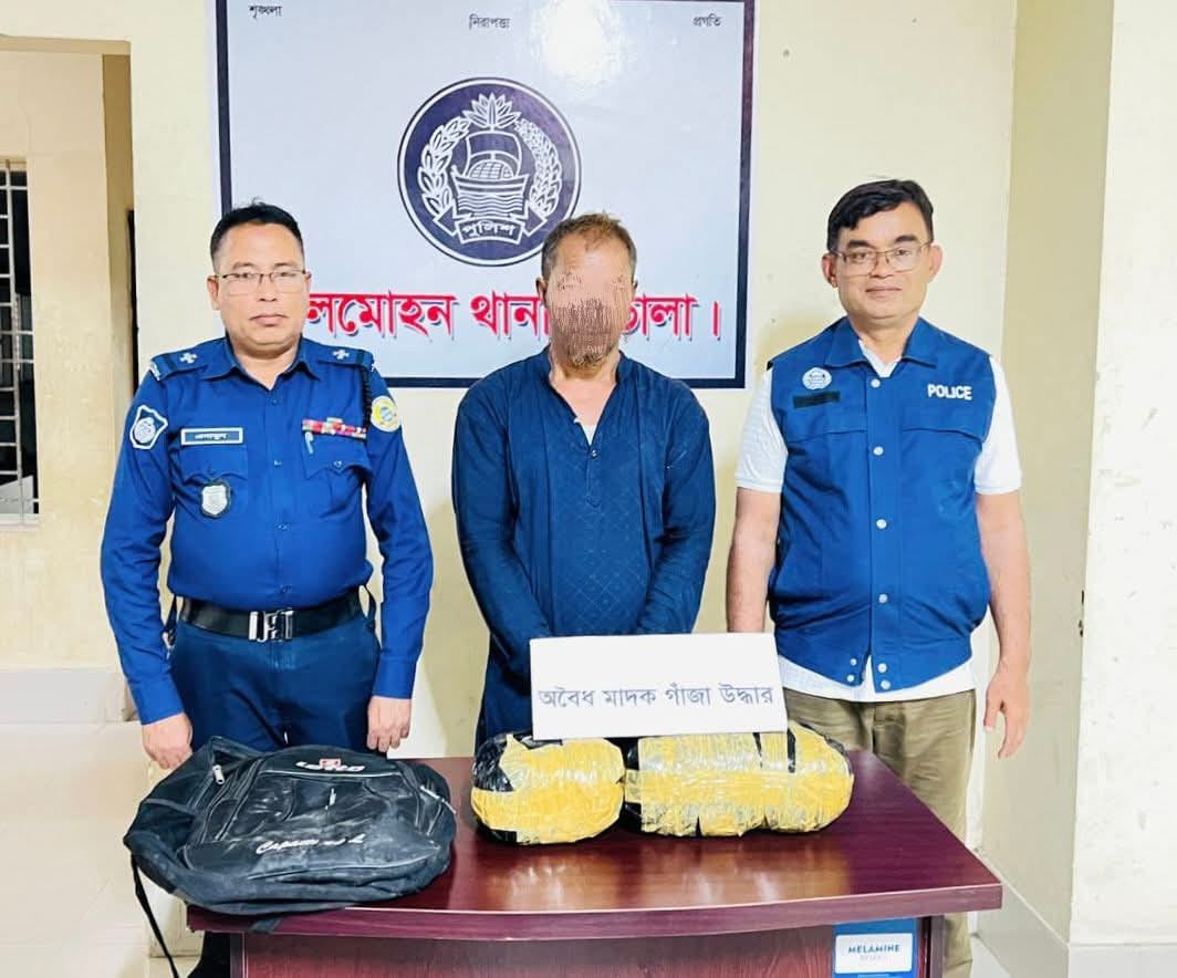 ভোলা জেলার লালমোহন উপজেলার সাদাপোল এলাকা থেকে ৩ কেজি গাজা সহ এক মাদক বিক্রেতাকে আটক করে লালমোহন থানা পুলিশ।