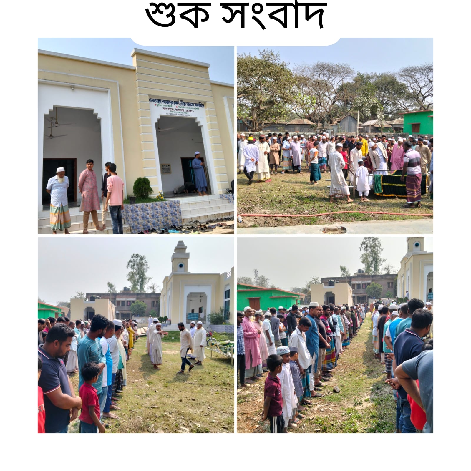 ঢাকার ধামরাই উপজেলার অন্তর্গত ৪ নং যাদবপুর ইউনিয়নের যাদবপুর গ্রামের ৫ নং ওয়ার্ডের মৃত জয়নাল আবেদন ছেলে,নজরুল ইসলাম আজ ২৬/০২/২০২৬ ইং রোজ বৃহস্পতিবার ক্যান্সারে আক্রান্ত হয়ে দীর্ঘ ৪ চার মাস পড়ে ইন্তেকাল করেন, এ নজরুল ইসলাম তার রেখে যাওয়া দুই কন্যা সন্তান ও এক ছেলে রেখে চলে গেলেন না ফেরার দেশে, দীর্ঘ ২ মাস চিকিৎসা দেওয়া পরও কোন কুল কিনারা হলো না, তবে মেয়ে দুইটি বিয়ে দিয়েছেন, কিন্ত ছেলেটাকে বিয়ে করাতে পারেনী যেহেতু ছোট বলে সম্ভব হলো না, তাই আমি বলি এ ছেলেটার জন্য দোয়া প্রার্থনা করছি, আর মৃত নজরুল ইসলামের জন্য ও দোয়ার দরখাস্ত করিলাম,ওনার শ্রী, ছেলে মেয়ে এদের ধর্য্য ধরার মত শক্তি দান করেন আল্লাহ পাক যেন নজরুলকে বেহেশতে নসিব দান করেন আমিন।