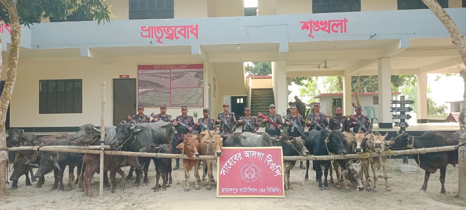 রৌমারীতে জামালপুর ব্যাটালিয়নের (৩৫ বিজিবি) অভিযানে মালিকবিহীন ভারতীয় গরু এবং মহিষ আটক করা প্রসঙ্গে।