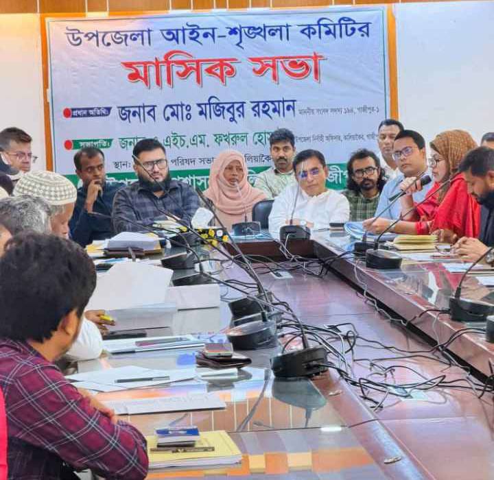 গাজীপুরের কালিয়াকৈরে উপজেলার সার্বিক আইনশৃঙ্খলা পরিস্থিতি স্থিতিশীল রাখা এবং জনভোগান্তি নিরসনে আইনশৃঙ্খলা কমিটির গুরুত্বপূর্ণ সভা অনুষ্ঠিত হয়েছে। সোমবার (২ মার্চ) সকালে উপজেলা পরিষদ সভাকক্ষে আয়োজিত এই সভায় প্রধান অতিথি হিসেবে উপস্থিত ছিলেন নবনির্বাচিত জাতীয় সংসদ সদস্য জনাব মোঃ মজিবুর রহমান। প্রধান অতিথি জনাব মোঃ মজিবুর রহমান উপস্থিত কমিটির সদস্যদের স্বাগত জানিয়ে বলেন, জনগণের জানমালের নিরাপত্তা নিশ্চিত করা আমাদের প্রধান লক্ষ্য। অপরাধী যে-ই হোক, কোনো ছাড় দেওয়া হবে না। একটি সুন্দর ও সুশৃঙ্খল কালিয়াকৈর গড়তে সংশ্লিষ্ট সকল দপ্তরকে সমন্বিতভাবে কাজ করতে হবে।