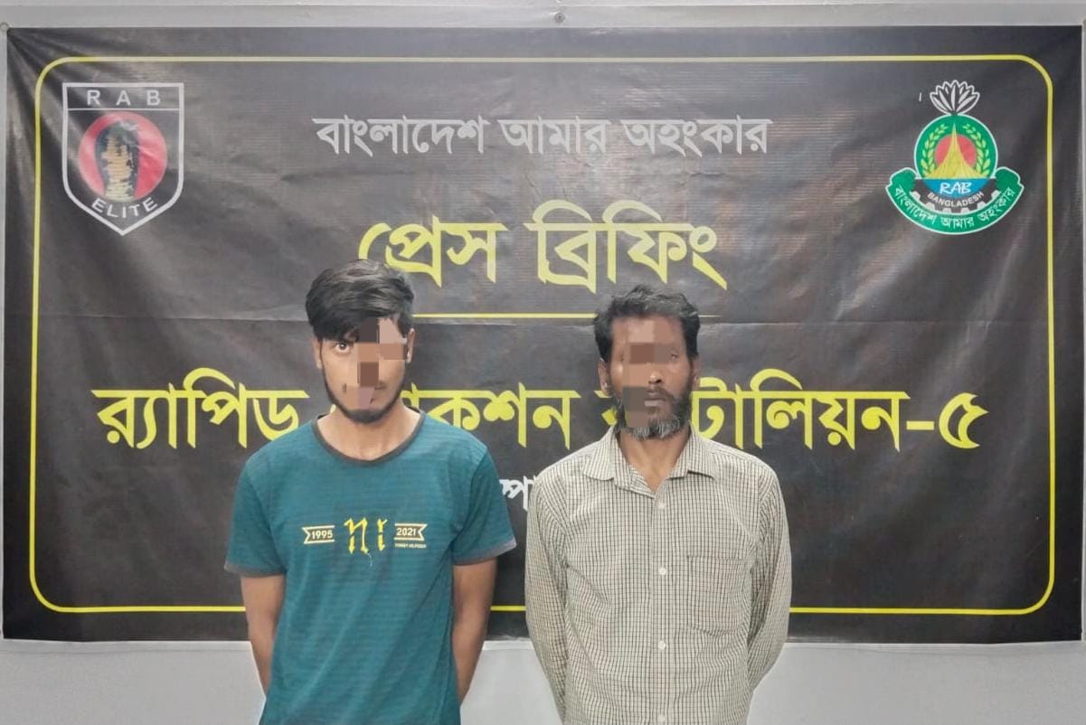 আটক ব্যক্তিরা হলেন— মো. সিয়াম ইসলাম (২৭), পিতা মো. নুর আলম, মাতা মোছা. শাহানা, বাসিন্দা দাশপুকুর বউবাজার এবং মো. রশিদ মিয়া (৪৫), পিতা মৃত মনতাজ মিয়া, মাতা মৃত রোকেয়া, বাসিন্দা নতুন বিল সিমলা। উভয়েই রাজপাড়া থানা এলাকার বাসিন্দা বলে জানা গেছে।