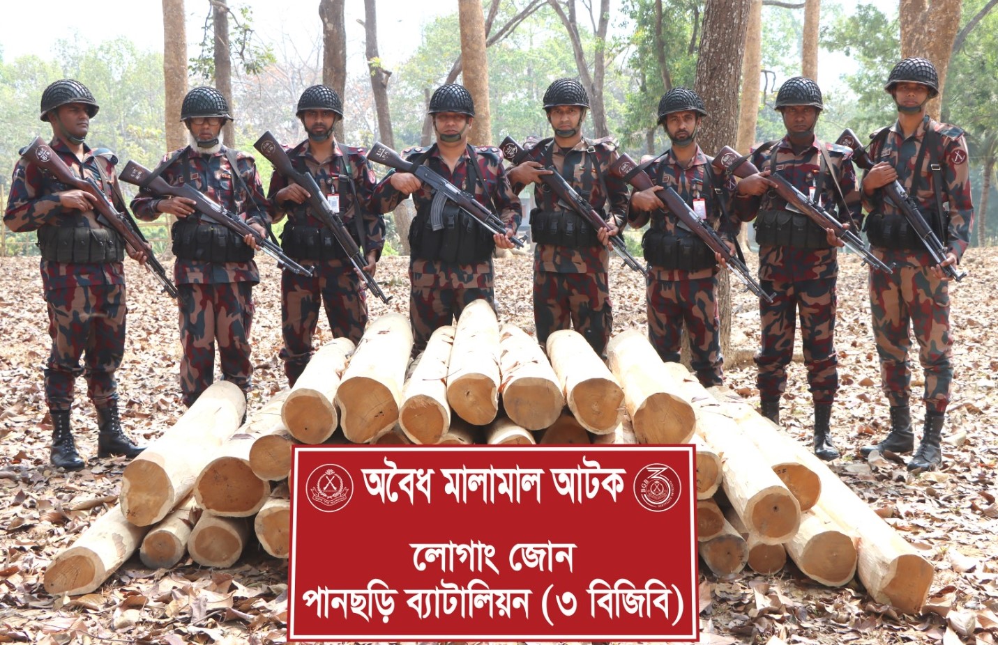 খাগড়াছড়ি জেলার পানছড়ি উপজেলাতে বিশেষ টহল অভিযান চালিয়ে বিপুল পরিমাণ অবৈধ সেগুন কাঠ আটক করেছে পানছড়ি ব্যাটালিয়ন (৩ বিজিবি), লোগাং জোন।বুধবার (৪ মার্চ ২০২৬) সকালে আনুমানিক সকাল ৭টার দিকে জেসিও নায়েব সুবেদার ব্যান্ড মো. তুষার হোসেনের নেতৃত্বে উপজেলার আদি ত্রিপুরা পাড়া এলাকায় এ বিশেষ টহল অভিযান পরিচালনা করা হয়।
