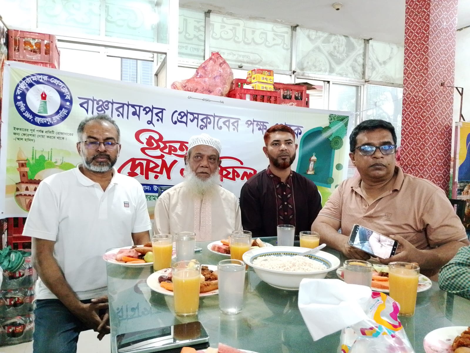 বাঞ্ছারামপুর প্রেসক্লাবের উদ্যোগে গণতান্ত্রিক উপায়ে নিবাচিত বাঞ্ছারামপুর প্রেসক্লাব। স্বৈরাচারী সরকার পতনের পর বাঞ্ছারামপুর প্রেসক্লাবের নির্বাচন হয়। আজকের ইফতার পার্টিতে উপস্থিত ছিলেন।সাবেক উপজেলা চেয়ারম্যান দুধ মিয়া স্যার, আর উপস্থিত ছিলেন বাঞ্ছারামপুরের সমাজসেবা অফিসার গণ। বাঞ্ছারামপুর প্রেসক্লাবের নির্বাচিত সভাপতি সাংবাদিক মোল্লা মোঃ নাসির আহমেদ,সাংবাদিক সহ-সভাপতি ফয়সল আহমেদ খান,সিনিয়র সহ-সভাপতি মো: আলমগীর হোসেন, সাধারণ সম্পাদক শামীম শিবলী প্রধান সমন্বয়কারী বাঞ্ছারামপুর উপজেলা গণসংহতি আন্দোলন। সাংগঠনিক সম্পাদক ফজলে রাব্বি রিফাত, আলি আহম্মদ, লিটন আহমেদ, শফিকুল ইসলাম, পলাশ আহমেদ রিপন সরকার, সাদ্দাম হোসেন, চেনেল এস এর সাংবাদিক সেলিম রেজা, সাংবাদিক শাহিন আহমেদ সাজু, মেহেদী হাসান মেহের, সাংবাদিক আগা শামীম, উক্ত সবার সভাপতিত্ব করেন বাঞ্ছারামপুর প্রেসক্লাবের সাদারণ সম্পাদক শামীম শিবলী ।উক্ত ইফতার পার্টিতে সাংবাদিকরা বলেন, আমরা হচ্ছি কলম সৈনিক আমাদের কলম চলবে সত্য ন্যায়ের পথে। আমরা সাংবাদিক আমরা সমাজের সত্য কথা তুলে ধরব সত্য ঘটনা প্রচার করব। আমরা সমাজের ভাল কিছু করতে চাই। সমাজ কে বদলাতে চাই।
