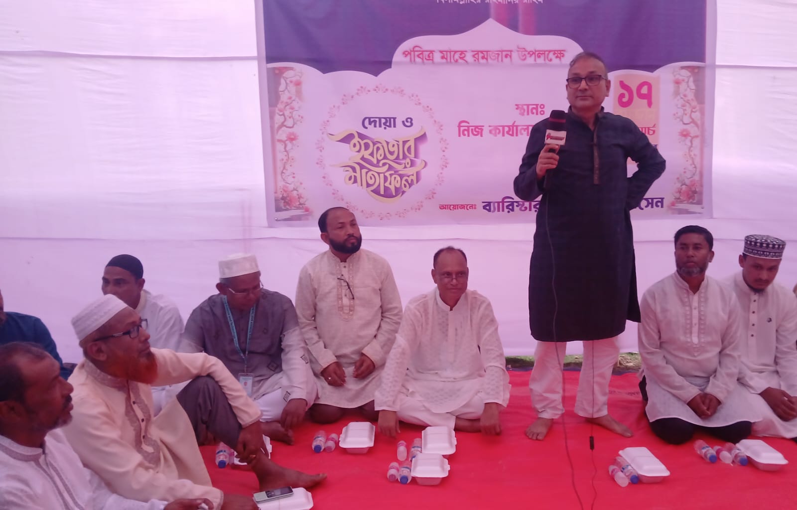 ইফতার মাহফিলে মুফাসসির আহমদ রিয়াদের সঞ্চালনায় প্রধান অতিথির বক্তব্য দেন ব্যারিস্টার আনোয়ার হোসেন। তিনি বলেন, পবিত্র মাহে রমজান মুসলমানদের জন্য আত্মশুদ্ধি, সংযম ও তাকওয়া অর্জনের মাস। রমজানের শিক্ষা আমাদের ব্যক্তিগত ও সামাজিক জীবনে ন্যায়, সততা ও মানবিক মূল্যবোধ প্রতিষ্ঠায় গুরুত্বপূর্ণ ভূমিকা রাখে। তিনি সবাইকে রমজানের শিক্ষা ধারণ করে সমাজে শান্তি, সম্প্রীতি ও মানবকল্যাণে কাজ করার আহ্বান জানান।