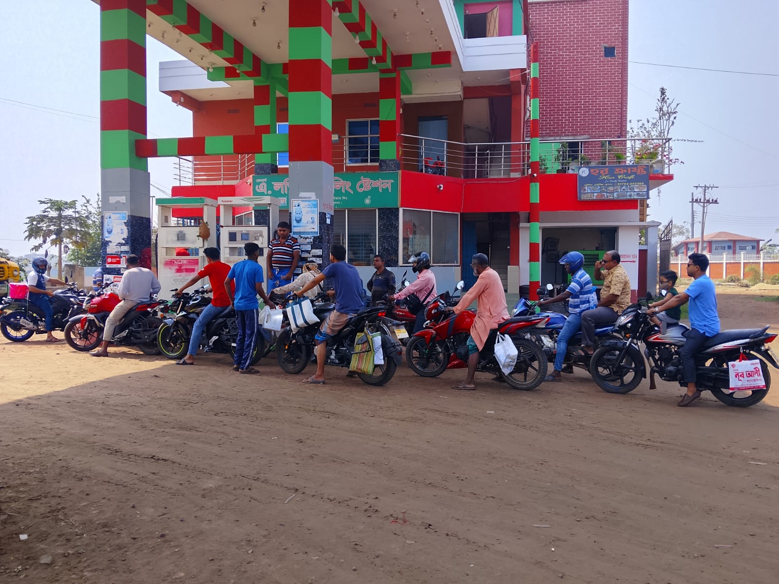 ডুমুরিয়ায় সব পাম্প গুলিতে লম্বা লাইন তেল পাচ্ছে না বাইকাররা।