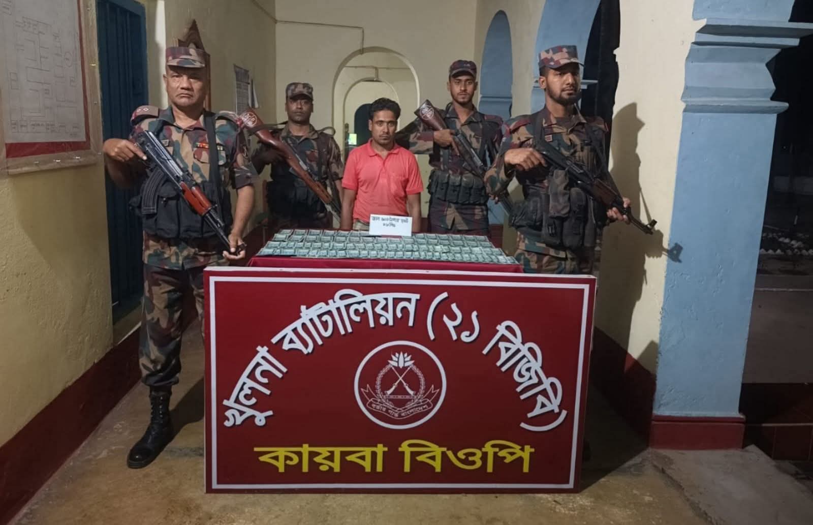 শার্শার কায়বা বিওপি সীমান্ত এলাকায় অভিযান পরিচালনা করে জাল নোট সহ একজন আটক
