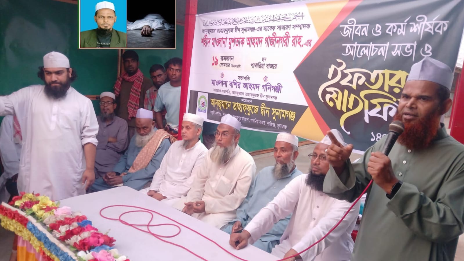 ঈদের আগেই শহীদ মাওলানা মুশতাক আহমদ গাজীনগরী (রাহ.) হত্যার রহস্য দ্রুত উদঘাটন করে জড়িতদের আইনের আওতায় আনার দাবি জানিয়েছেন আলেম-উলামারা। এ বিষয়ে প্রশাসনকে দ্রুত কার্যকর পদক্ষেপ নেওয়ার আহ্বানও জানানো হয়।সোমবার বিকেলে সুনামগঞ্জ জেলার শান্তিগঞ্জ উপজেলার পাথারিয়া বাজারে আঞ্জুমানে তাহাফফুজে দ্বীন সুনামগঞ্জ এর উদ্যোগে আয়োজিত ইফতার ও দোয়া মাহফিলে বক্তারা এসব কথা বলেন।সংগঠনের সহ-সাধারণ সম্পাদক মাওলানা আবদুল্লাহ গাজীনগরী ও মাওলানা মুস্তাফিজুর রহমান মাহদীর যৌথ সঞ্চালনায় অনুষ্ঠিত অনুষ্ঠানে সভাপতিত্ব করেন সংগঠনের ভারপ্রাপ্ত সভাপতি মাওলানা বশির আহমদ গনিগঞ্জি।