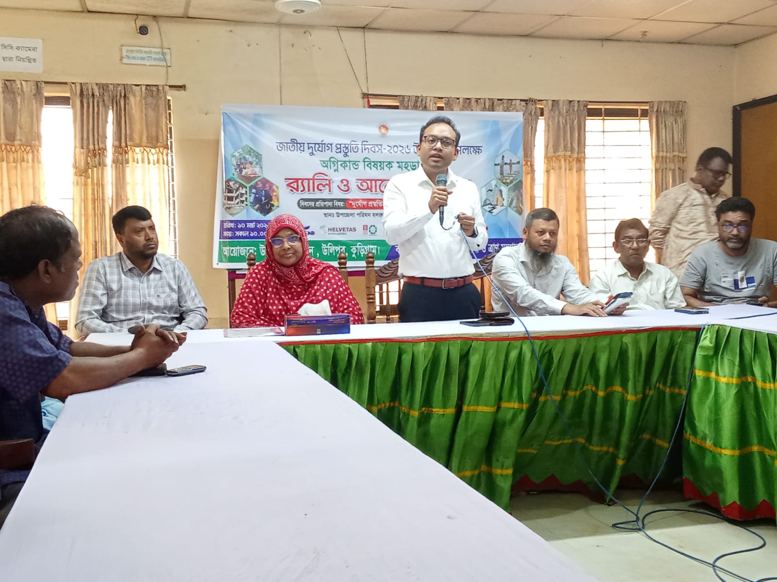 আজ মঙ্গলবার ১০ মার্চ ২০২৬ ইং তারিখ উলিপুর উপজেলা প্রশাসনের উদ্যোগে দুর্যোগ প্রস্তুতিতে লড়বো তারুণ্যের বাংলাদেশ গড়বো প্রতিপাদ্যকে সামনে রেখে সকাল ১০ ঘটিকায় উলিপুর উপজেলার সকল কর্মকর্তা কর্মচারীদের ও সুধীজনদের নিয়ে রেলি শেষে ১০ টা ৩০ মিনিটে উপজেলা চত্বরে অগ্নিকাণ্ডে করণীয় বিষয়ক মহড়া আয়োজনের ব্যবস্থা গ্রহণ করেন উলিপুর স্টেশন অফিসার ফায়ার সার্ভিস ও সিভিল ডিফেন্স অগ্নিকাণ্ড বিষয়ক মহরা শেষে উপজেলা পুরাতন তৃতীয় তলা হলরুমে আলোচনা সভার আয়োজন করা হয় সকল কর্মসূচিতে সমন্বয় ও তদারকির ব্যবস্থা করেন প্রোগ্রাম ম্যানেজার রেজিলিয়েন্স প্রকল্প এম জে এস কে এস আলোচনা সভায় সঞ্চালনা করেন উপজেলা প্রকল্প বাস্তবায়ন কর্মকর্তা পি আই ও খন্দকার মোঃ ফিজানুর রহমান আলোচনা সভায় সভাপতিত্ব করেন উপজেলা নির্বাহী অফিসার মাহামুদুল হাসান এ সময় উপস্থিত ছিলেন জেলা প্রশাসক কুড়িগ্রাম জেলা ত্রান ও পুনর্বাসন কর্মকর্তা উলিপুর কুড়িগ্রাম প্রশাসক চেয়ারম্যান প্যানেল চেয়ারম্যান বিভিন্ন কর্মচারী কর্মকর্তা বৃন্দ গন আরো উপস্থিত ছিলেন স্থানীয় সুধীজন রাজনৈতিক ব্যক্তিবর্গ ও বিভিন্ন মাল্টিমিডিয়া ইলেকট্রনিক্স মিডিয়া গণমাধ্যম কর্মীগণ