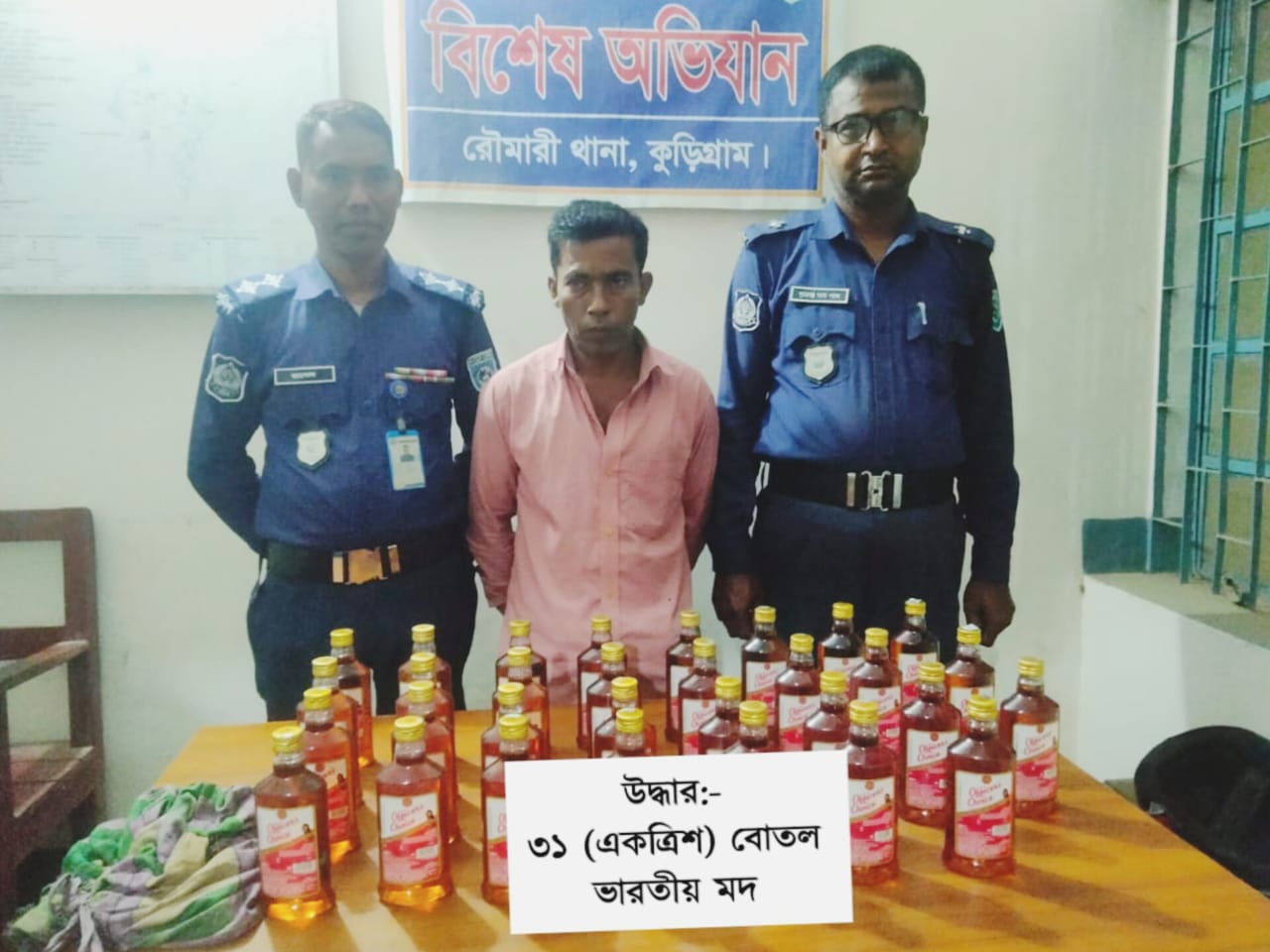 রৌমারীতে ৩১ বোতল ভারতীয় মদসহ যুবক গ্রেফতার