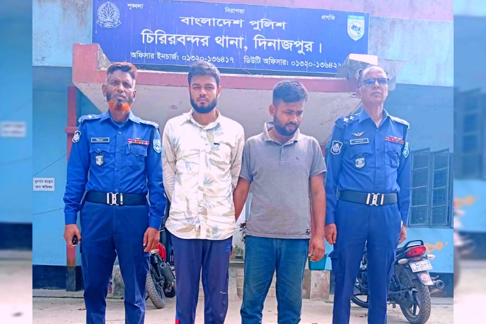 দিনাজপুরের চিরিরবন্দর উপজেলায় ২ মাদকসেবিকে আটক করে ভ্রাম্যমান আদালতের মাধ্যমে কারাদণ্ড ও অর্থদণ্ড প্রদান করা হয়েছে।থানা সূত্রে জানা গেছে, গত ১৪ মার্চ শনিবার দিবাগত রাত ১২টার পর উপজেলার ফতেজংপুর ইউনিয়নের চৌধুরী পাড়া গ্রামে এসআই ইব্রাহিমের নেতৃত্বে সঙ্গীয় পুলিশ জনৈক খাইরুল ইসলামের বাড়িতে অভিযান চালায়।এ সময় মাদক সেবনরত অবস্থায় ফতেজংপুর হিন্দুপাড়ার দিলীপ রায়ের ছেলে রিপন রায় চঞ্চল (২৮) এবং গাইবান্ধা জেলার সাঘাটা উপজেলার কড়ুয়াহাট এলাকার শাহিনুর ইসলামের ছেলে সজীব হোসেন (২৯)-কে আটক করা হয়।ঘটনার সংবাদ পেয়ে উপজেলা নির্বাহী অফিসার ও নির্বাহী ম্যাজিস্ট্রেট ফাতেহা তুজ জোহরা দ্রুত ঘটনাস্থলে পৌঁছে ভ্রাম্যমান আদালত পরিচালনা করেন।পরে মাদকদ্রব্য নিয়ন্ত্রণ আইনে, আটক দুই মাদকসেবির স্বীকারোক্তির ভিত্তিতে প্রত্যেককে ১ মাস করে বিনাশ্রম কারাদণ্ড এবং ১০০ টাকা করে অর্থদণ্ড প্রদান করা হয়।এ বিষয়ে থানার অফিসার ইনচার্জ মাহমুদুন-নবী বলেন, আটককৃতদের আদালতে সোপর্দ করা হয়েছে। পুরো থানা এলাকায় যেকোন মূল্যে মাদক নির্মূলে অভিযান অব্যাহত থাকবে।