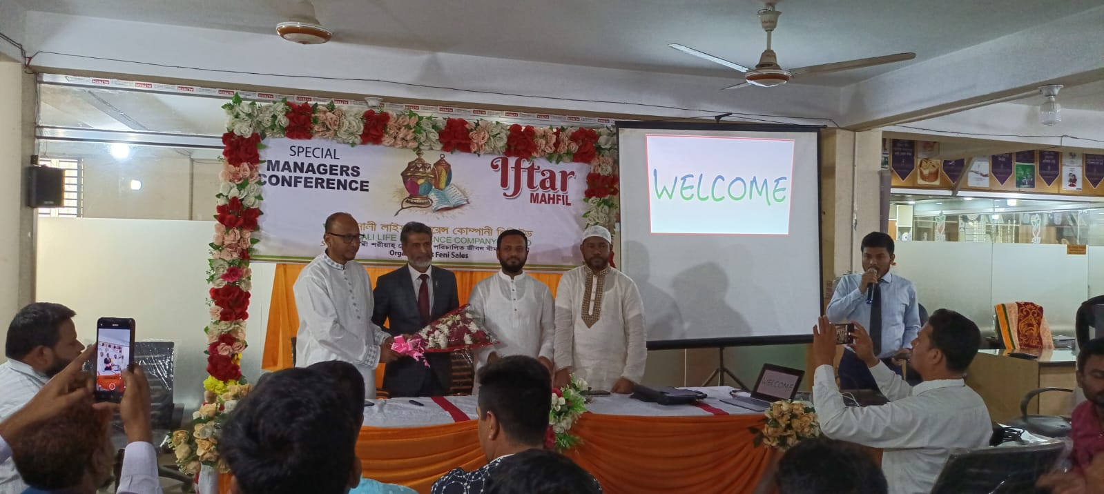 ফেনীতে চতুর্থ প্রজম্মের জীবন বীমা কোম্পানি সোনালী লাইফ ইন্সুইরেন্স কোম্পানী লিমিটেড ফেনী সেলস্ এর আয়োজনে ম্যানেজার কনফারেন্স ও ইফতার অনুষ্ঠিত হয়।১৪ মার্চ (শনিবার) সোনালী লাইফ ফেনী সেলস্ অফিসে, সোনালী লাইফ ইন্সুরেন্সের ডিএমডি মোঃ আনোয়ার হোসেনের সভাপতিত্বে, ব্রাঞ্চ ম্যানেজার মোহাম্মদ রফিকের সঞ্চালনায়, ম্যানেজার কনফারেন্স ও ইফতার অনুষ্ঠিত হয়েছে।সোনালী লাইফ ইন্সুরেন্সের শতাধিক ইউনিট ম্যানেজার ও ব্রাঞ্চ ম্যানেজারকে নিয়ে এ আয়োজন করা হয়।এতে প্রধান অতিথি হিসেবে উপস্থিত থেকে ইউনিট ম্যানাজার ও ব্রাঞ্চ ম্যানেজারদের কে দিক নির্দেশনা প্রদান করেন, সোনালী লাইফ ইন্সুরেন্সের হেড অফ ট্রেইনার মোঃ তোফাজ্জল হোসেন মানিক,এতে বিশেষ অতিথি হিসেবে উপস্থিত ছিলেন সোনালী লাইফ ইন্সুরেন্সের চট্টগ্রাম আগ্রাবাদ মেট্রোর সিনিয়র ব্রাঞ্চ ম্যানেজার ও ইনচার্জ,মোঃ জসীম উদ্দিন।এতে আরো উপস্থিত ছিলেন, সোনালী লাইফ ইন্সুরেন্সের এএমডি আবু সাহাদাত দুলাল, এজিএম, মোঃ সাহাদাত মজুমদার প্রমুখ।বক্তারা বলেন,চতুর্থ প্রজন্মের জীবন বীমা কোম্পানি সোনালী লাইফ ইন্সুরেন্স, শতভাগ আইটি বেস্ট কোম্পানি, ২০১৩ সাল থেকে অদ্যাবধি পর্যন্ত গ্রাহকের আস্থা ও শতভাগ সার্ভিস দিয়ে আসছে। বিশ্বের বিভিন্ন দেশ থেকে অ্যাওয়ার্ড পেয়েছে। আগামীতে কোম্পানি আরো ভালো করার প্রত্যয়ে কাজ করে যাচ্ছে।