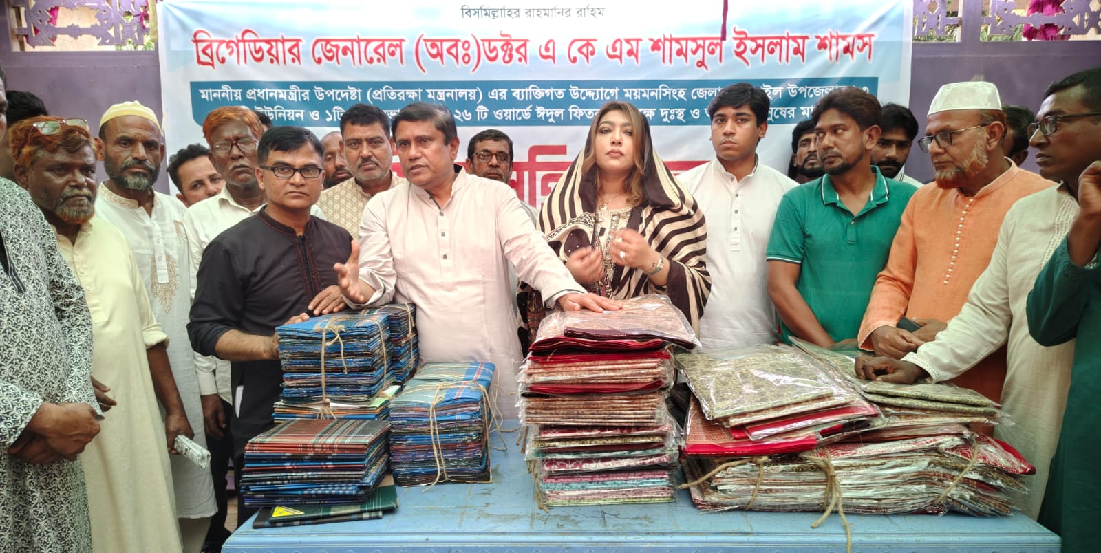 নান্দাইলে ঈদ উপলক্ষে ব্রিগেডিয়ার জেনারেল (অব.) ডক্টর এ কে এম শামসুল ইসলামের দুঃস্থদের মাঝে শাড়ি-লুঙ্গি ও নগদ অর্থ বিতরণ..