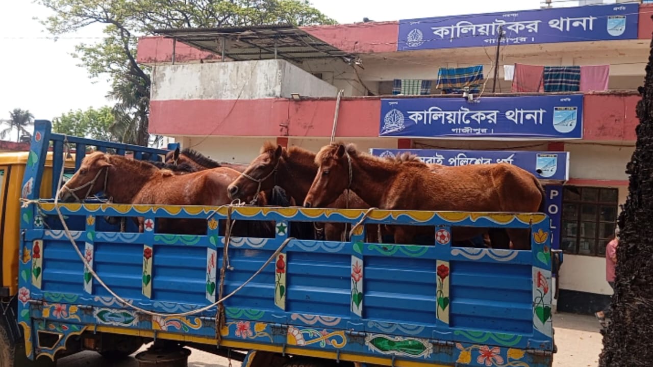 কালিয়াকৈরে ৯টি ঘোড়া ও প্রোবক্স গাড়িসহ ৫ জন থানা হাজতে।