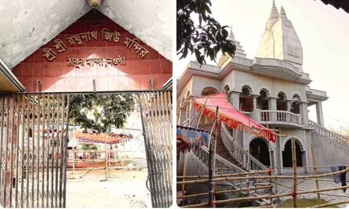 বাংলাদেশের নওগাঁ জেলার মান্দা উপজেলার ঠাকুর মান্দা গ্রামে অবস্থিত শ্রী শ্রী রঘুনাথ জিউ মন্দির একটি প্রাচীন ও ঐতিহ্যবাহী ধর্মীয় প্রতিষ্ঠান। বহু বছর ধরে এটি শুধু একটি পূজাস্থল নয়, বরং স্থানীয় মানুষের আধ্যাত্মিক বিশ্বাস, সংস্কৃতি ও সাম্প্রদায়িক সম্প্রীতির কেন্দ্রবিন্দু হিসেবে পরিচিত। প্রতি বছর এখানে অত্যন্ত জাঁকজমকপূর্ণভাবে রাম জন্মোৎসব উদযাপন করা হয়, যা এলাকাবাসীর অন্যতম প্রধান ধর্মীয় ও সামাজিক অনুষ্ঠান।মন্দিরটির সুনির্দিষ্ট প্রতিষ্ঠাকাল সম্পর্কে নির্ভরযোগ্য লিখিত তথ্য না থাকলেও মন্দির কমিটির সাধারণ সম্পাদক সত্যেন্দ্রনাথ প্রাং-এর মতে, এটি আনুমানিক ৩০০ থেকে ৪০০ বছর পুরনো। এই দীর্ঘ সময় ধরে মন্দিরটি স্থানীয় মানুষের বিশ্বাস ও আস্থার কেন্দ্র হিসেবে টিকে আছে। প্রজন্মের পর প্রজন্ম ধরে এখানে পূজা-অর্চনা চলে আসছে, যা এর ঐতিহ্যকে আরও সমৃদ্ধ করেছে।এই মন্দিরের সবচেয়ে আশ্চর্যজনক দিক হলো—এখানে মানত করলে নাকি জন্মান্ধ বা দৃষ্টিশক্তিহীন মানুষ দৃষ্টি ফিরে পায়—এমন একটি প্রচলিত বিশ্বাস রয়েছে। ঠাকুর মশাইসহ অনেকেই এই ধরনের ঘটনার কথা উল্লেখ করেন।মন্দির কমিটির সাধারণ সম্পাদক সত্যেন্দ্রনাথ প্রাং নিজেও একটি ব্যক্তিগত অভিজ্ঞতা শেয়ার করেন। তিনি জানান, একসময় তিনি একটি দুরারোগ্য ব্যাধিতে আক্রান্ত হন। চিকিৎসার জন্য তিনি ঢাকা, রাজশাহী এমনকি ভারতের ভেলোর পর্যন্ত গিয়েও সুস্থতা লাভ করতে পারেননি। চিকিৎসকেরা অপারেশনের পরামর্শ দেন। কিন্তু দেশে ফিরে তিনি শ্রী শ্রী রঘুনাথ জিউ মন্দিরে মানত করেন। তার ভাষ্যমতে, মাত্র দুই দিনের মধ্যেই তিনি আরোগ্য লাভ করতে শুরু করেন, যা তিনি নিজের জীবনের বাস্তব অভিজ্ঞতা হিসেবে তুলে ধরেন।এই ধরনের অভিজ্ঞতা মন্দিরটিকে স্থানীয় মানুষের কাছে আরও অলৌকিক ও পবিত্র হিসেবে প্রতিষ্ঠিত করেছে।প্রতি বছর রাম জন্মোৎসব উপলক্ষে এখানে দশ দিনব্যাপী এক বৃহৎ মেলার আয়োজন করা হয়। এই মেলায় দূর-দূরান্ত থেকে ভক্ত ও দর্শনার্থীরা অংশগ্রহণ করেন। পূজা-অর্চনার পাশাপাশি মেলাটি হয়ে ওঠে একটি সামাজিক মিলনমেলা, যেখানে বিভিন্ন পণ্য, খাবার এবং সাংস্কৃতিক কর্মকাণ্ডের সমাহার ঘটে।এই উৎসব স্থানীয় অর্থনীতিতেও ইতিবাচক প্রভাব ফেলে এবং এলাকার মানুষের মধ্যে আনন্দ ও উৎসবের আমেজ সৃষ্টি করে।মন্দিরটির আরেকটি গুরুত্বপূর্ণ দিক হলো এর চারপাশে গড়ে ওঠা সাম্প্রদায়িক সম্প্রীতি। ঠাকুর মশাইয়ের মতে, এখানে কখনো কোনো জঙ্গি তৎপরতা বা ধর্মীয় বিরোধের ঘটনা ঘটেনি। বরং আশেপাশের মুসলিম পরিবারগুলো পূজা উপলক্ষে সহযোগিতার হাত বাড়িয়ে দেয়।এটি প্রমাণ করে যে ধর্ম ভিন্ন হলেও পারস্পরিক শ্রদ্ধা ও সহযোগিতার মাধ্যমে একটি শান্তিপূর্ণ সমাজ গড়ে তোলা সম্ভব।ম