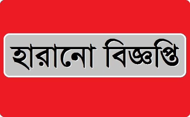 হারানো বিজ্ঞপ্তি একটি গুরুত্বপূর্ণ ডকুমেন্ট হারিয়ে গেছে।