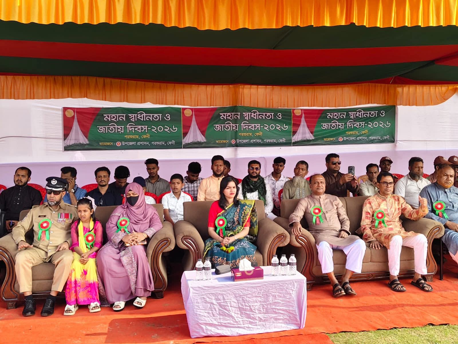 পরশুরামে অনুষ্ঠিত হলো দিনব্যাপী নানা আয়োজনে মহান স্বাধীনতা দিবস ও মনমুগ্ধকর কুচকাওয়াজ। ২৬ মার্চ (বৃহস্পতিবার) পরশুরাম উপজেলা প্রশাসনের আয়োজনে পরশুরাম সরকারি পাইলট উচ্চ বিদ্যালয় মাঠে সকালে জাতীয় সংগীত ও জাতীয় পতাকা উত্তোলনের মাধ্যমে, দিনব্যাপী নানা আয়োজনে মহান স্বাধীনতা দিবস ও মনমুগ্ধকর কুচকাওয়াজ অনুষ্ঠিত হয়েছে। এতে প্রধান অতিথি হিসেবে উপস্থিত ছিলেন, পরশুরাম উপজেলা নির্বাহী কর্মকর্তা ও নির্বাহী ম্যাজিস্ট্রেট সাদিয়া সুলতানা। সহকারী কমিশনার (ভূমি) এস এম শাফায়াত আক্তার নুর। পরশুরাম মডেল থানার ভারপ্রাপ্ত কর্মকর্তা (ওসি) মোঃ আশরাফুল ইসলাম। এতে বিশেষ অতিথি হিসেবে উপস্থিত ছিলেন, বিএনপির কেন্দ্রীয় নির্বাহী কমিটির সদস্য ও সাবেক পৌর মেয়র আবু তালেব। পরশুরাম উপজেলা বিএনপির আহবায়ক আব্দুল হালিম মানিক। উপজেলা বিএনপির সদস্য সচিব মোঃ ইব্রাহিম খলিল মনি, পৌর বিএনপির সদস্য সচিব মোঃ মাহবুবুল হক মজুমদার, বিআরডিবির চেয়ারম্যান আবু তালেব রিপন, পৌর বিএনপির আহবায়ক কাজী ইউসুফ মাহফুজ, উপজেলা জামায়াতের আমীর মাওলানা আব্দুল হালিম, পৌর জামায়াতের আমীর মোহাম্মদ মোস্তফা, পরশুরাম প্রেস ক্লাবের সভাপতি এম এ হাসান, সাধারণ সম্পাদক মহি উদ্দিন প্রমুখ। এতে বীর মুক্তিযোদ্ধা, বিভিন্ন রাজনৈতিক দলের নেতৃবৃন্দ, পুলিশ, ফায়ার সার্ভিস, শিক্ষক, সাংবাদিক, ডাক্তার, শিক্ষার্থী, বিভিন্ন স্বেচ্ছাসেবী সংগঠন, ও নানা শ্রেনি পেশার মানুষের অংশগ্রহণে দিনব্যাপী মনমুগ্ধকর কুচকাওয়াজ, অভিনয়, নাটক, গান, নাচ, নৃত্য প্রদর্শন করেন। অনুষ্ঠান শেষে উপজেলা প্রশাসন বিভিন্ন শ্রেণী পেশার মানুষ, বীর মুক্তিযোদ্ধা, শিক্ষক,-শিক্ষার্থী, সাংবাদিক, ডাক্তার,ও গণ্যমান্য ব্যক্তি, বিভিন্ন ক্যাটাগরিতে সকলের মাঝে পুরস্কার বিতরণ করেন।