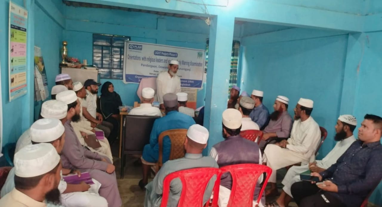 সুনামগঞ্জের দোয়ারাবাজার উপজেলার পান্ডারগাঁও ইউনিয়নে এনজিও ইরা (ERA) এর Light Project এর উদ্যোগে ‘Orientation With Religious Leaders and Youth on Early Warning Dissemination’ শীর্ষক ওরিয়েন্টেশন অনুষ্ঠান সোমবার (৩০ মার্চ ২০২৬) সকাল ১০টায় ইউনিয়ন পরিষদের অস্থায়ী কার্যালয়ে শ্রীপুর বাজার অনুষ্ঠিত হয়েছে।