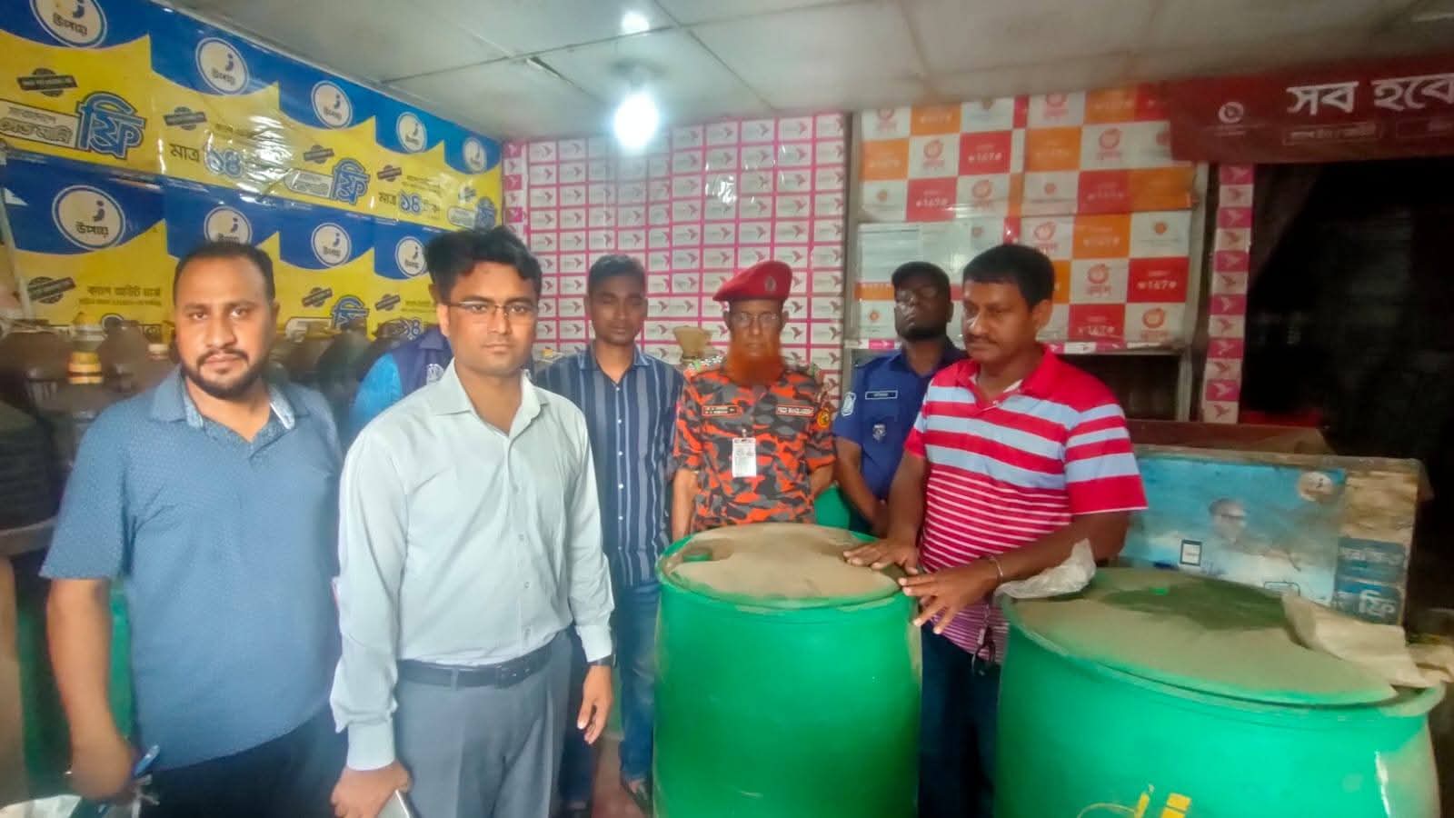 বৃহস্পতিবার (০২ এপ্রিল) বিকেল আনুমানিক ৩টার দিকে উপজেলার পৌর এলাকার ভুবনেশ্বর ব্রিজ সংলগ্ন স্থানে অভিযান পরিচালনা করা হয়। এ সময় “খান ভ্যারাইটিস স্টোর”-এর একটি গুদাম থেকে ৪৪০ লিটার ডিজেল এবং ১০১৮ লিটার পেট্রোল জব্দ করা হয়।