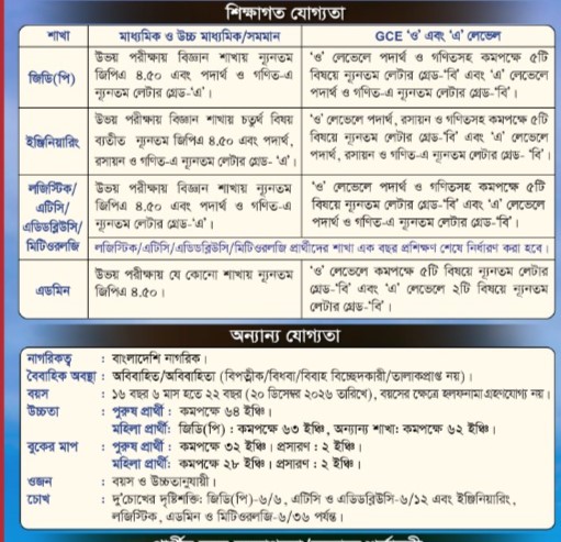 • বয়স: ২০ ডিসেম্বর ২০২৬ তারিখে ১৬ বছর ৬ মাস থেকে ২২ বছরের মধ্যে হতে হবে (হলফনামা গ্রহণযোগ্য নয়)।