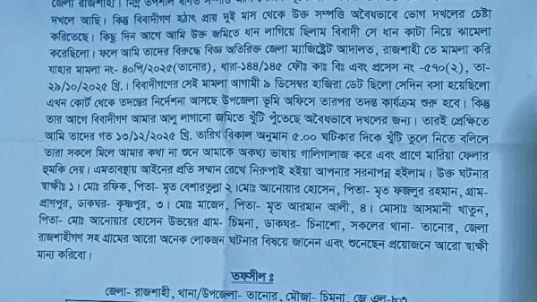 তানোরে ফসলি জমি জবরদখলের চেষ্টার অভিযোগ থানায়