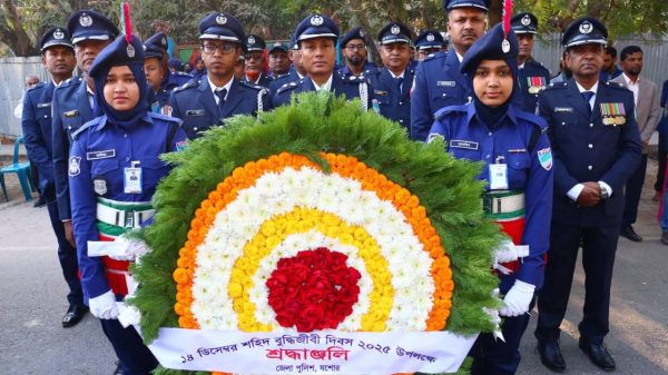 শহীদ বুদ্ধিজীবী দিবস-২০২৫ উপলক্ষে স্মৃতিস্তম্ভে জাতির সূর্য সন্তানদের প্রতি জেলা পুলিশ যশোরের বিনম্র শ্রদ্ধাঞ্জলি অর্পণ।.. যশোর সারসা গোলাম মোস্তফা.. রোজ -রবিবার১৪ ডিসেম্বর। শহীদ বুদ্ধিজীবী দিবস। ১৯৭১ সালের এই দিনে বিজয়ের