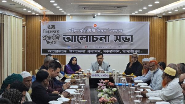 কালকিনিতে শহীদ বুদ্ধিজীবী দিবস পালিত, মুক্তিযুদ্ধের আদর্শ ছড়িয়ে দেওয়ার আহ্বান মোঃ সাব্বির আহমেদ স্টাফ রিপোর্টার মাদারীপুর। মাদারীপুর কালকিনিতে রবিবার (১৪ ডিসেম্বর) দুপুরে শহীদ বুদ্ধিজীবী দিবস উপলক্ষে এক গুরুত্বপূর্ণ আলোচনা সভার
