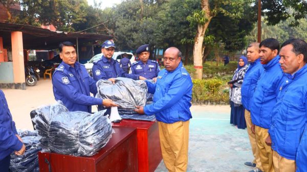 যশোর জেলার ০৩ (তিন) থানায় গ্রাম পুলিশদের মাঝে শীতবস্ত্র বিতরণ করলেন যশোরের পুলিশ সুপার