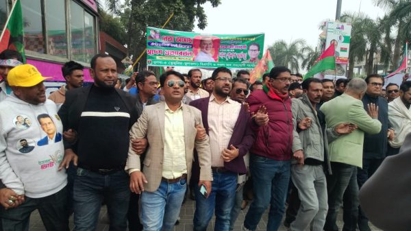 তারেক রহমানের আগমন উপলক্ষ্যে ঢাকার রাজ পথে ডুমুরিয়া উপজেলা বি এন বি।