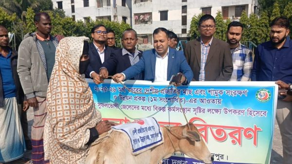 সালথায় দেশীয় প্রজাতির মাছ ও শামুক রক্ষায় জেলেদের মাঝে বকনা বাছুর বিতরণ ওবায়দুর রহমান সালথা উপজেলা প্রতিনিধি ফরিদপুর সালথায় ২০২৫-২০২৬ অর্থ বছরে দেশীয় প্রজাতির মাছ এবং শামুক সংরক্ষণ ও উন্নয়ন