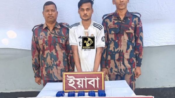 বিজিবি’র অভিযানে ১০,০০০ ইয়াবা সহ এক পাচারকারী গ্রেপ্তার। মো মোজাম্মেল হক,স্টাফ রিপোর্টার কক্সবাজার: কক্সবাজার জেলার কক্সবাজার ব্যাটালিয়ন (৩৪ বিজিবি) এর ঘুমধুম বিওপি’র টহলদল কর্তৃক মাদকবিরোধী অভিযানে ১০,০০০ পিস বার্মিজ