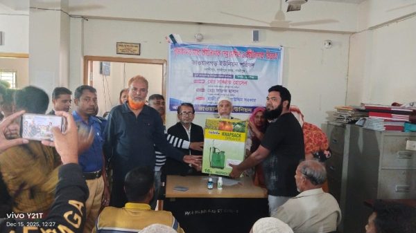 নিজস্ব প্রতিবেদন  গাজীপুর সদর, ১৫ ডিসেম্বর ২০২৫: কিষকদের আধুনিক কৃষির দিকে উৎসাহিত করতে এবং ফসলের সুরক্ষা নিশ্চিত করতে গাজীপুর সদর উপজেলার ভাওয়ালগড় ইউনিয়ন পরিষদে এক বিশেষ বিতরণ অনুষ্ঠানের আয়োজন করা