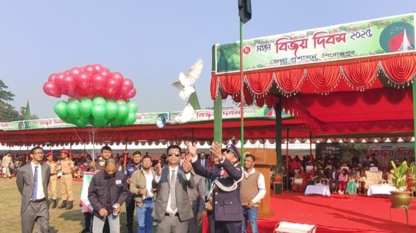 সৈয়দ আলরাজী, পিরোজপুর প্রতিনিধি পিরোজপুরে যথাযোগ্য মর্যাদা ও উৎসবমুখর পরিবেশে মহান বিজয় দিবস-২০২৫ উদযাপিত হয়েছে। মঙ্গলবার (১৬ ডিসেম্বর) সূর্যোদয়ের সঙ্গে সঙ্গে শহরের বলেশ্বর ঘাটে অবস্থিত শহীদ স্মৃতিস্তম্ভে ৩১ বার তোপধ্বনির