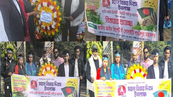 জাতীয় ক্রাইম রিপোর্টার্স সোসাইটি গাজীপুর মহানগর শাখা বিজয় দিবস উপলক্ষে সকল বীর শহীদদের প্রতি শ্রদ্ধাঞ্জলি অর্পণ করেন