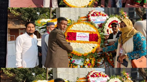 নিয়ামতপুরে মহান বিজয় দিবস উপলক্ষে শহীদ মিনারে বিএনপির পুষ্পাঞ্জলি অর্পণ